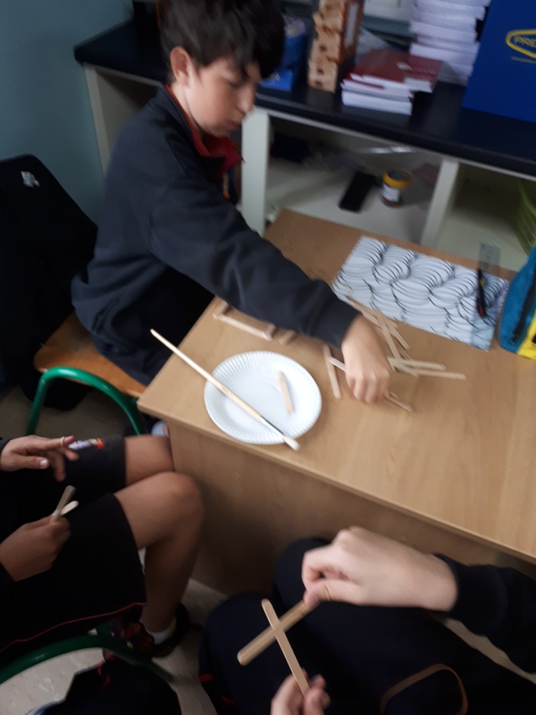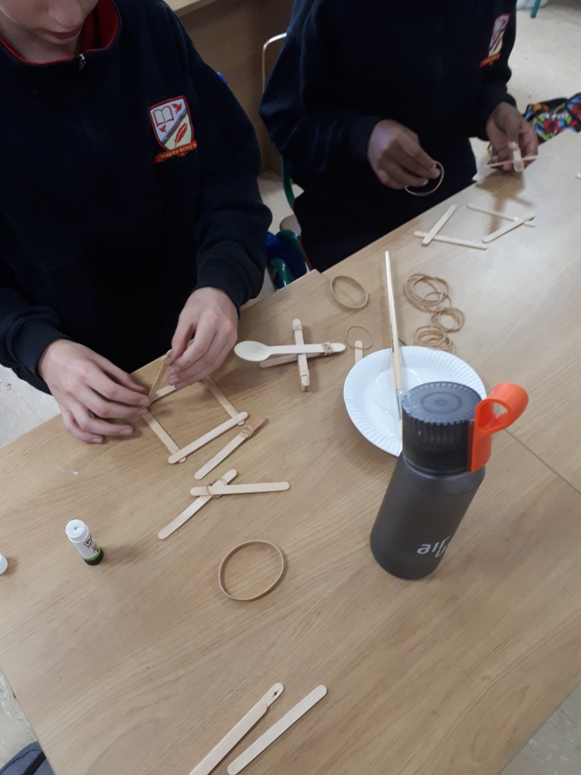For science this week, the boys in 6th class looked at how catapults work. Catapults were used for a long time in warfare, the Romans used catapults as siege weapons and later on, the Normans used them also. In the twentieth century catapults were used in the First World War to fire hand grenades into the enemy’s trenches. Using rubber bands, lollipop sticks, pva glue and tape, we were able to design our own versions. By putting stress or tension on the elastic bands, we were able to store energy in them. When we released the elastic band, we were able to use this energy to send small objects flying!