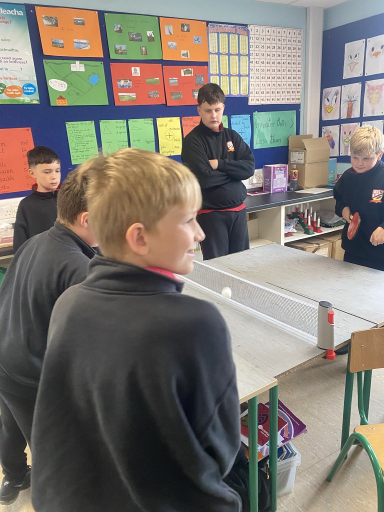 As part of the active schools, we have been participating in table tennis in the classrooms. The boys have really enjoyed the new table tennis sets provided by the Active Schools. Boys in 3rd,4th,5th and 6th class are all working at improving their skills