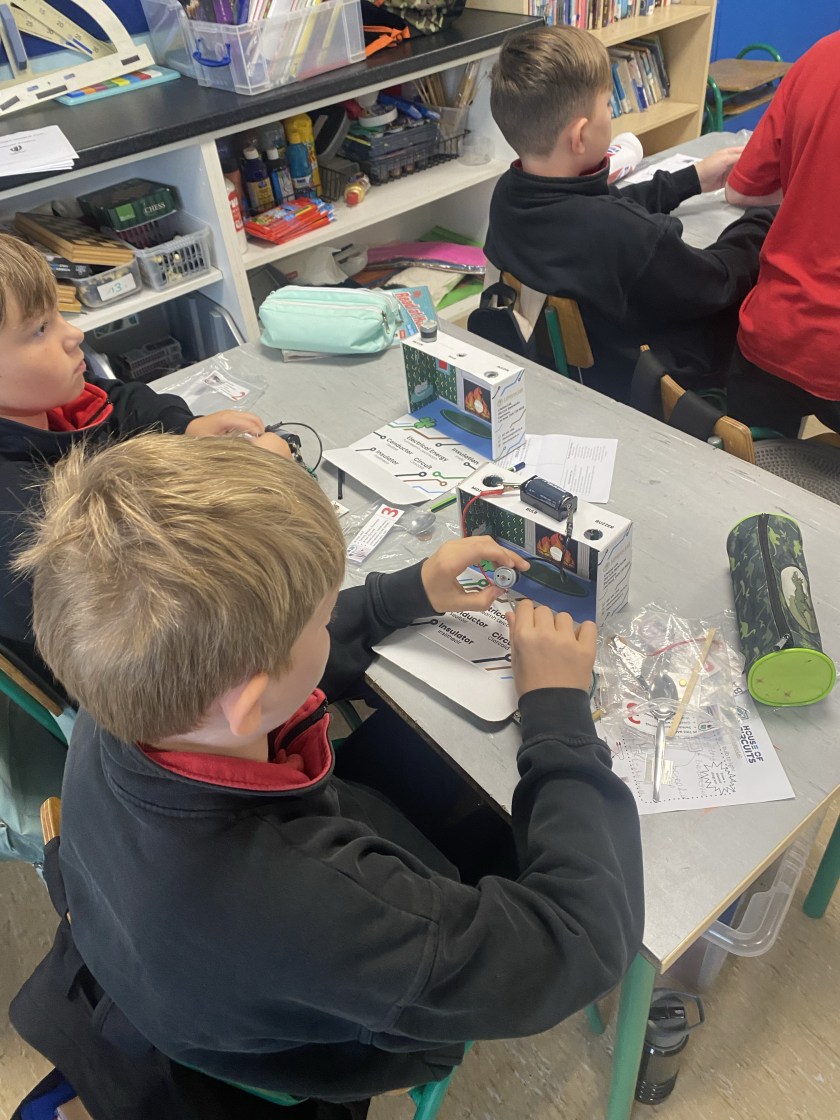 A girl named Francesca from Lifetime Labs came into our classroom at 9:30 am. She had met us before when we were in fourth class. We all got some boxes and when the box gets opened it would turn into a house. There would also be three plastic bags with some things inside. She told us to open one of the bags. In the bag there were crocodile clips a battery as well as a battery box a bulb a bulb holder and some tin foil. She wanted us to make the light bulb light up by using the battery. First we would have to put the battery in the battery box and then we would have to put the light bulb in the bulb holder. We would have to connect the clips on these little metal points that would poke out of the sides of the battery holder. Then we would connect the clips to another two points metal points poking out of the bulb holder. The energy from the battery would go to the clips and then the energy would transfer from the clips to the light bulb which would light the light bulb up. Some of us already knew how to do this since we did it before in third class but it was through a video call because of Covid. After we lit our light bulbs she gave us a challenge. She wanted us to try lightning the light bulb with only one clip. We quickly found out that we could put the battery on one of the metal points then we could press the clip against the battery and clip the second point which would make the light bulb light up. On the top of the house there were three holes. One of them was for the light bulb. The second is for a motor. The third was for a buzzer. She told us to put the light bulb through the hole and it would look like it was hanging from the roof. After the light bulb we were making a motor. We got a shamrock and put it on the motor. The motor gets powered in the same way the light bulb gets lit up. The motor acts like a ceiling fan in the house. Now our goal was to find out what conducted and insolated electricity. First I tried a coin. I connected a clip to one of the points of the battery holder and then I connected it to the coin. I got another clip connected it to one of the battery holder then to the point of the motor. I got a third clip connected it to the coin and to the second point of the motor which made it work because metal is a very good conductor of electricity. There were more items that conducted electricity like a metal spoon tin foil and a broken wire. I also helped other people to get their items working. There was one more thing a switch. When we would connect ether the light bulb or motor with the switch when ever we would flip the switch the light bulb or motor would stop working. Whenever we would flip the switch again it will turn back on. The last thing she wanted to do was to make the light bulb and motor to work at the same time. I was able to make it work but my method wasn’t very good. On top of the house there was a third hole for a buzzer. When I asked Francesca about it she explained that they were planning on making a buzzer but never got around to doing it because of time problems. After we did everything we had to put everything back in the bags and put them in the box.