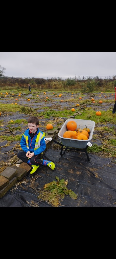 We paid a very special visit to the pumpkin patch Field of Dreams today. Not only did the boys get to choose their very own pumpkins, they also took part in a pumpkin treasure trail, followed by a trip inside a polytunnel. We enjoyed some Halloween treats after in the cafe. A very special thanks to Debbie and her amazing hosts for making this an unforgettable experience for the boys. Thanks also to Garda Kate for accommodating so many pumpkins in the community bus on the way back to school. I would highly recommend that you visit The Field of Dreams for an experience not to be missed.