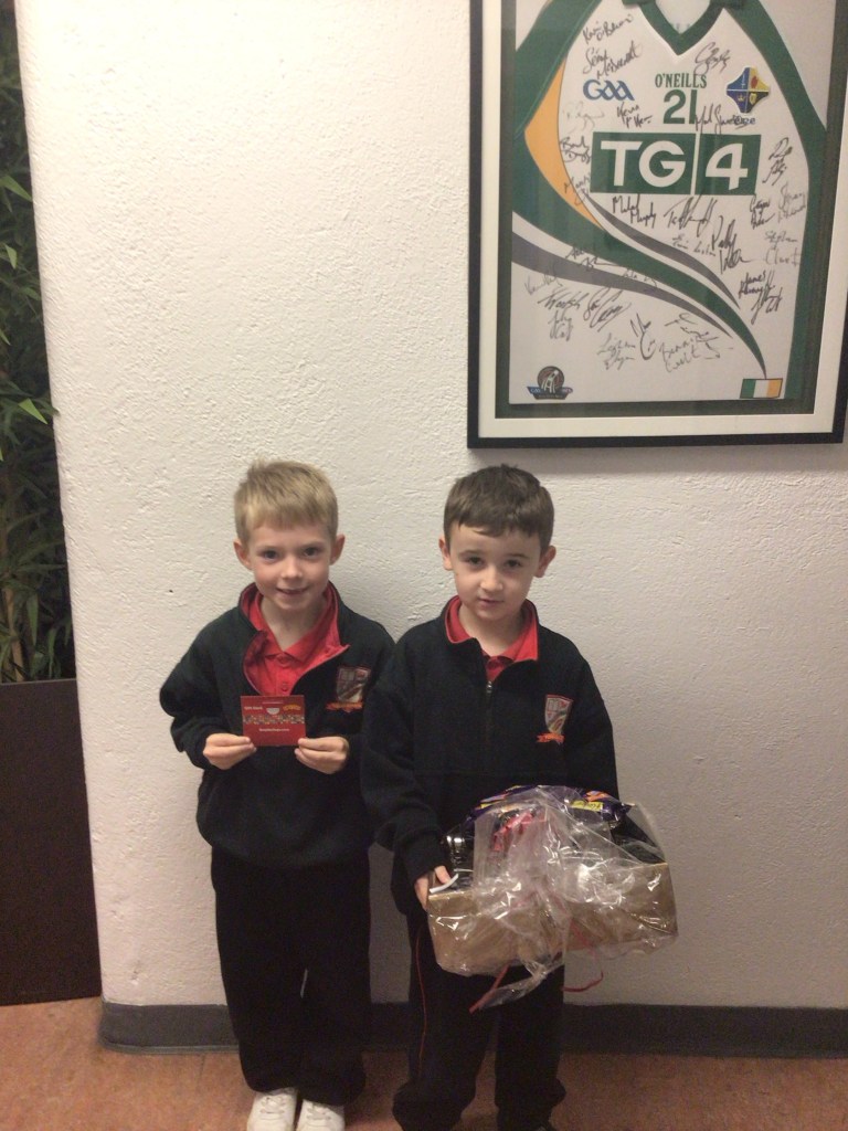Well done to Seán from sixth class and Peter from fifth class for drawing the winning tickets. We are very grateful to all for supporting this raffle so well.