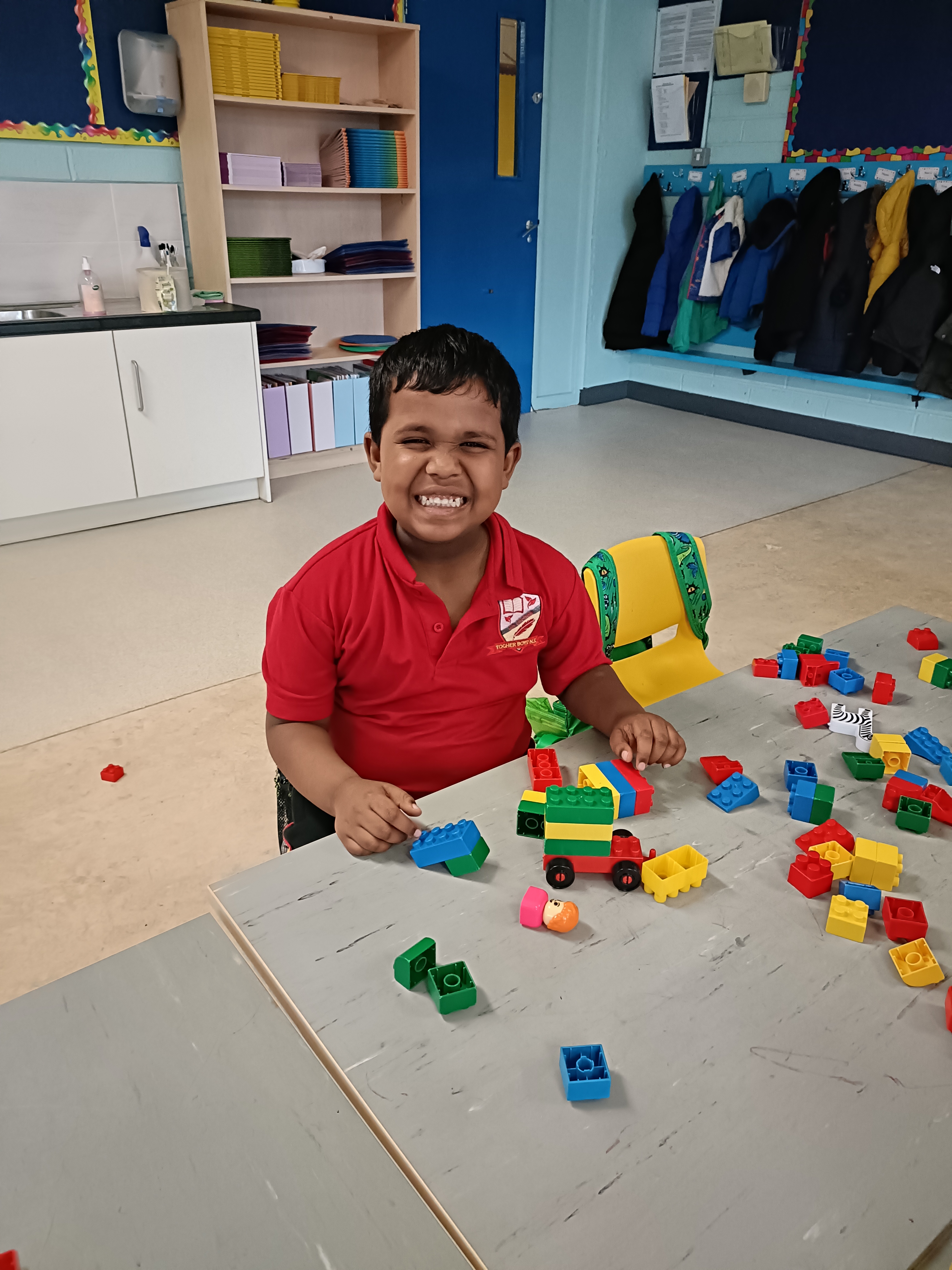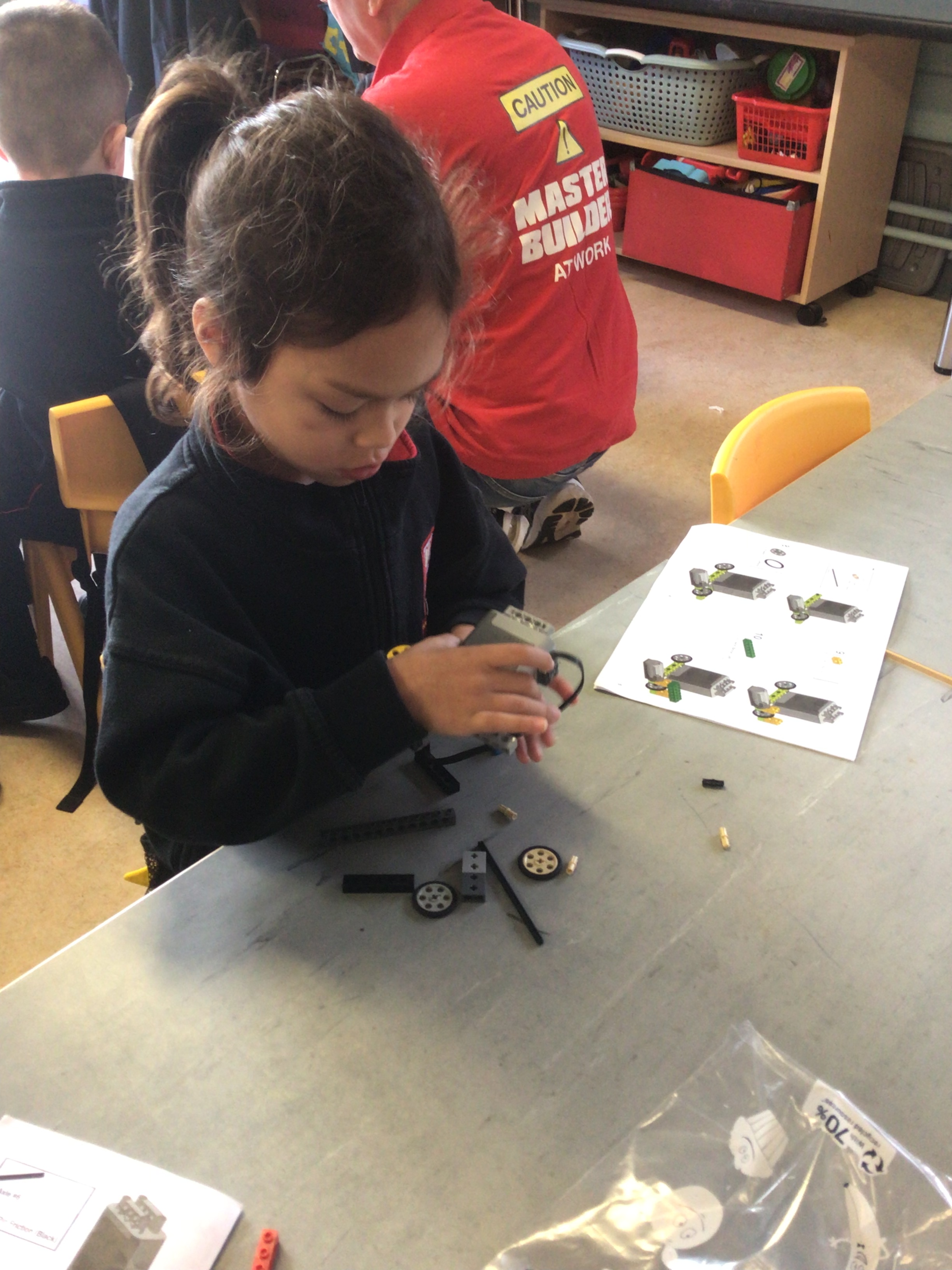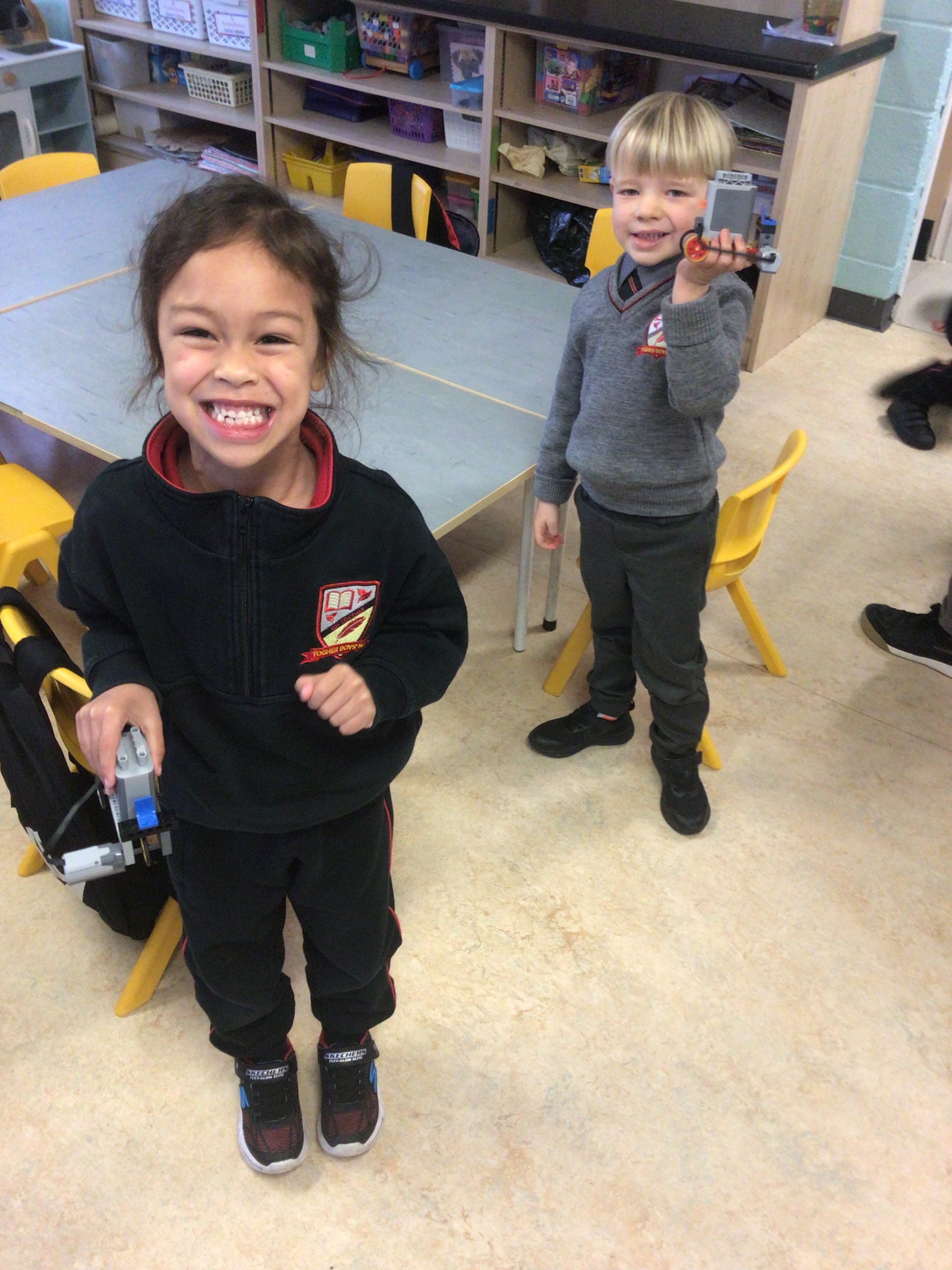 The boys had a Lego workshop and had great fun constructing cars with motors. The boys had to work hard to follow the instructions and create their own car. They had lots of fun and were able to make their own Lego piece.