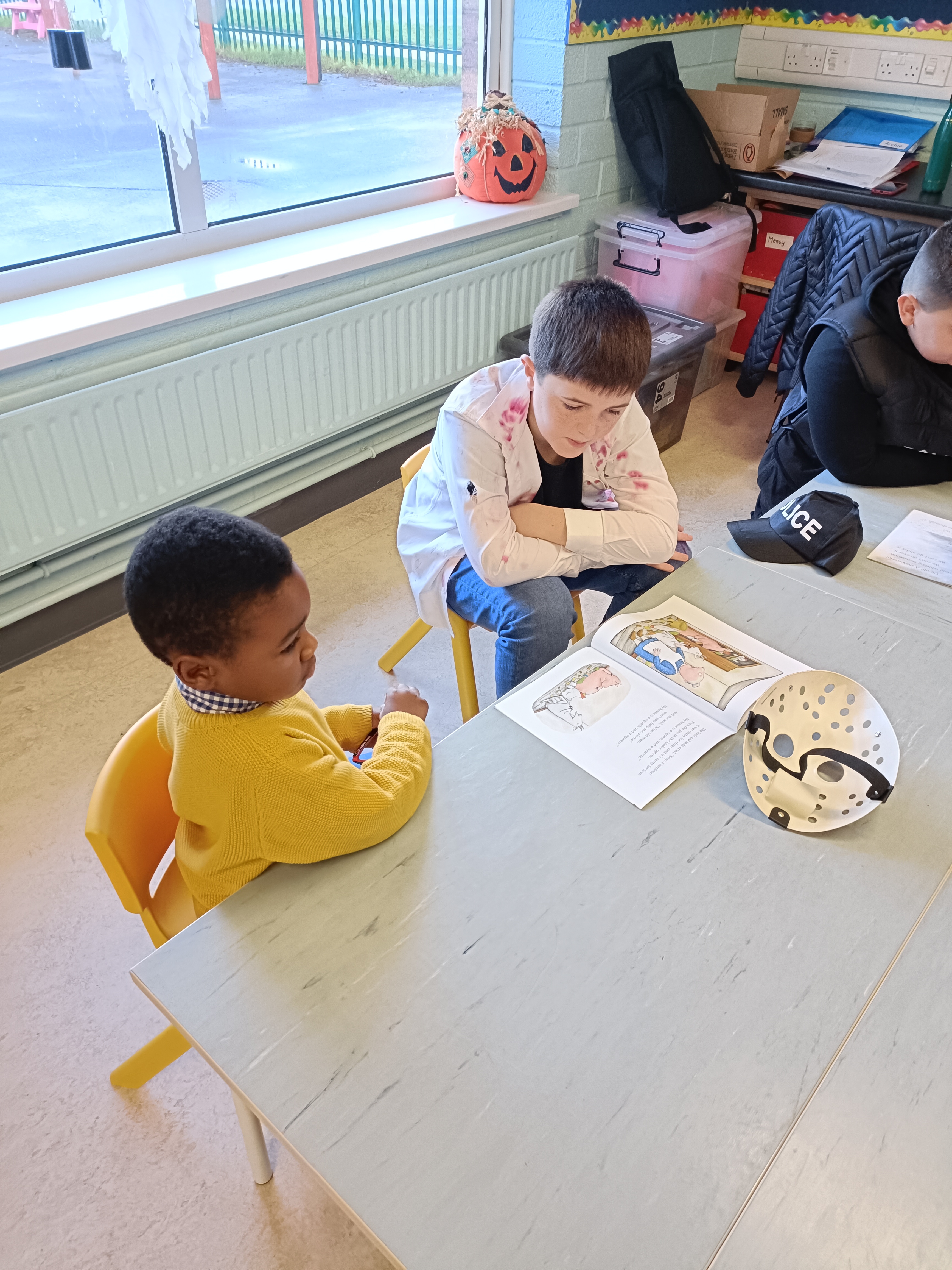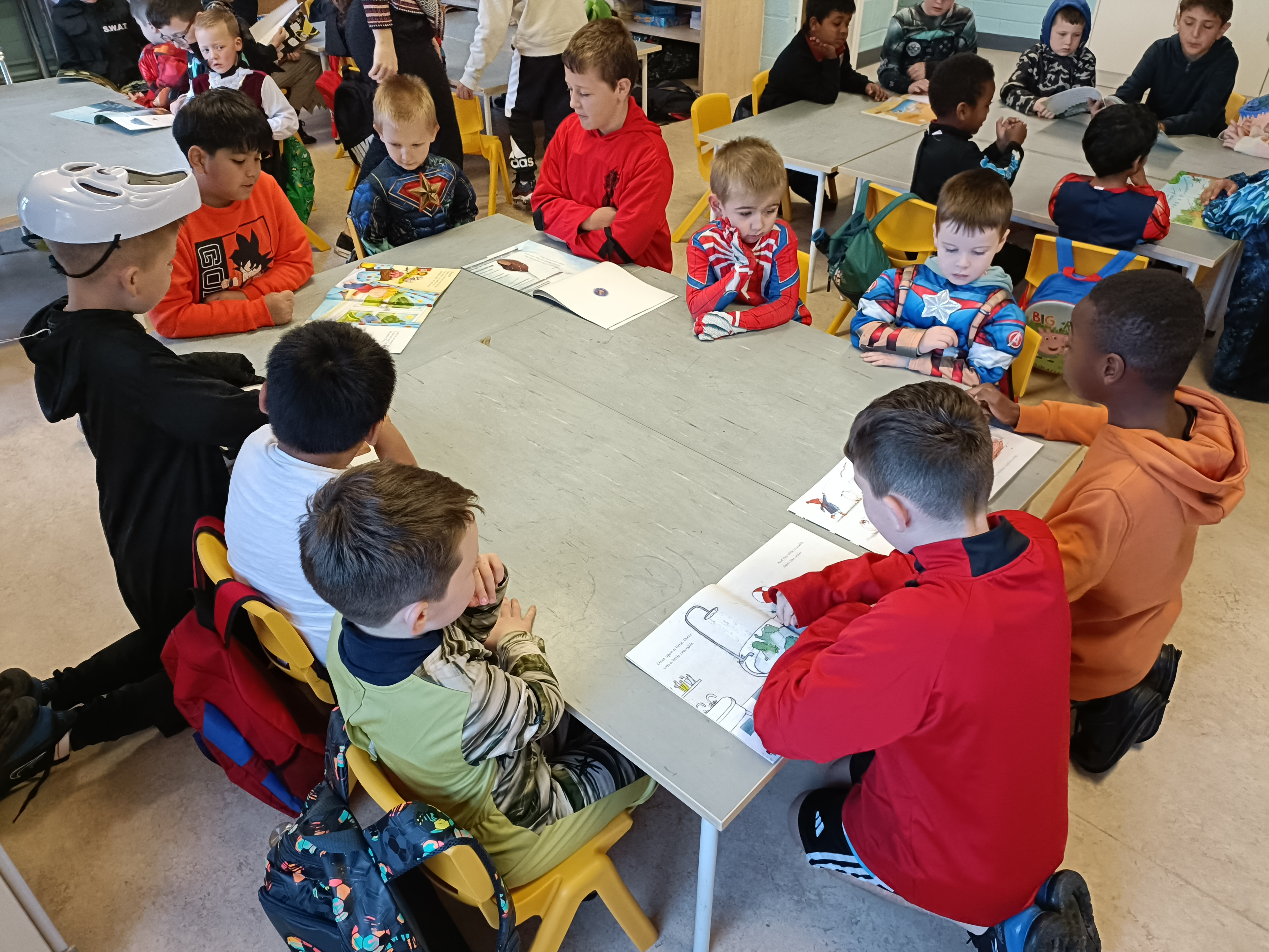 The boys all dressed up for Halloween in their lovely costumes and had a great day playing Halloween games before the midterm break. The boys in Ms McGloin’s class came down to visit our room and the boys really enjoyed listening to the stories the 4th class boys read for them. The junior infants loved the different stories and we are looking forward to working together again soon.