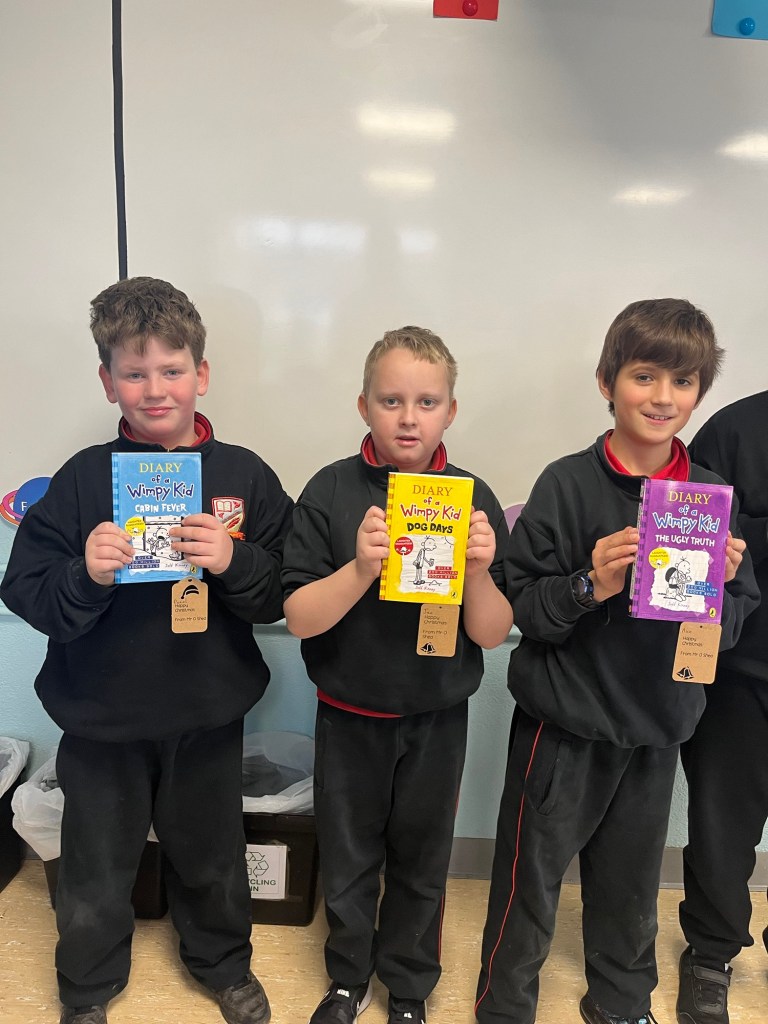 As a result of this, each boy got to select a book of their choice that they would love for Christmas. Horrid Henry, Diary of a Wimpy Kid, Football Superstars and David Williams were popular books that the boys in 3rd Class love reading!