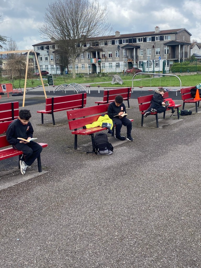 After all of the incredible reading that has been going on in school this year, 5th class celebrated World Book Day in style. Between a shopping trip to Easons, book reviews on their current books and a ‘Guess the Reader’ quiz, it has certainly been a day to remember. After a great day in school, the boys walked to Clashduv Park, where they took advantage of the peace and quiet to delve into the world of books