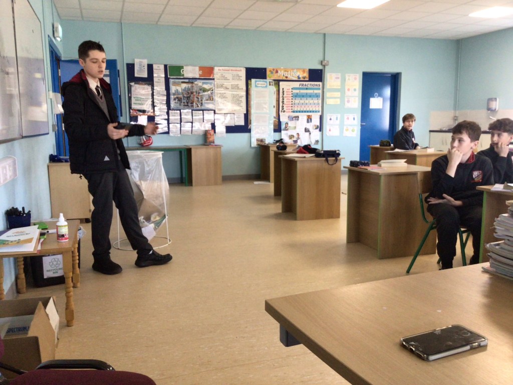Today we were delighted to welcome back our past pupil John Linehan Duggan to sixth class. John is now in second year in Coláiste an Spioraid Naoimh in Bishopstown and has had great success in national debating competitions having been awarded the All Ireland prize when he was in first year.