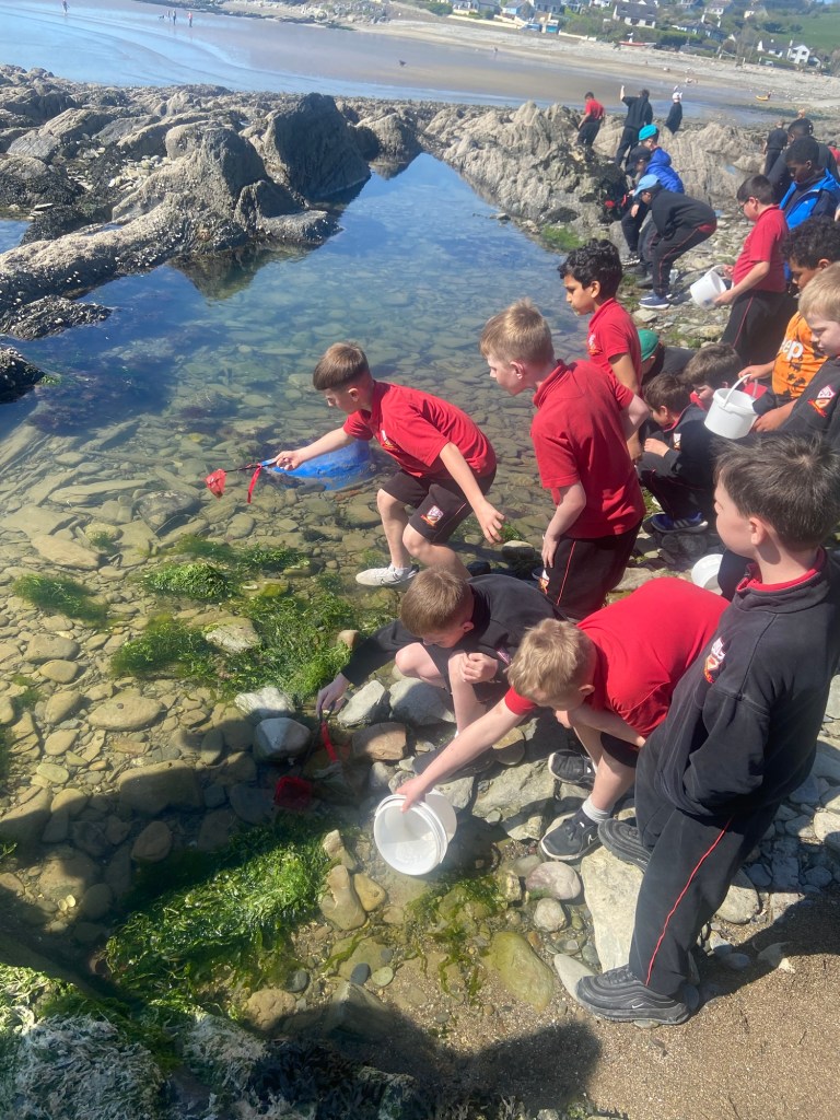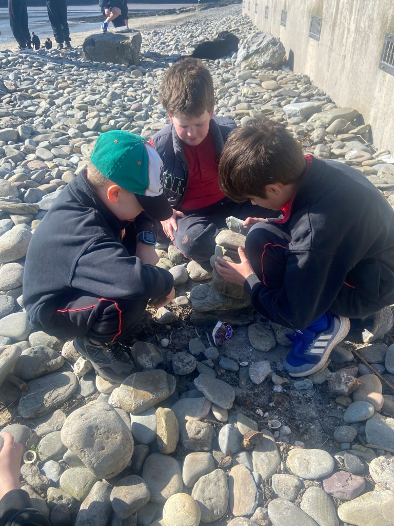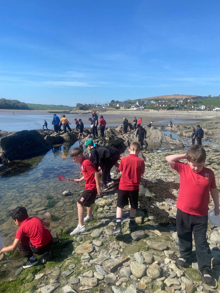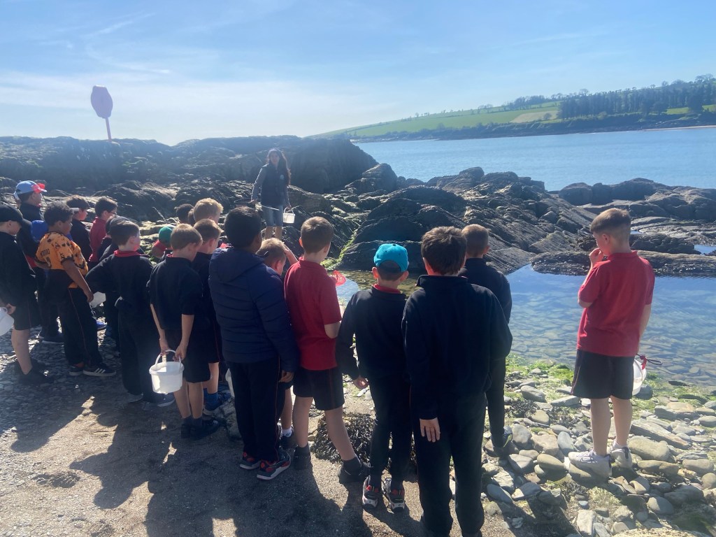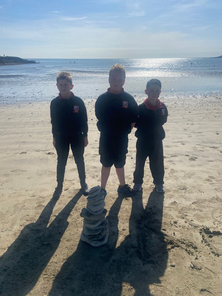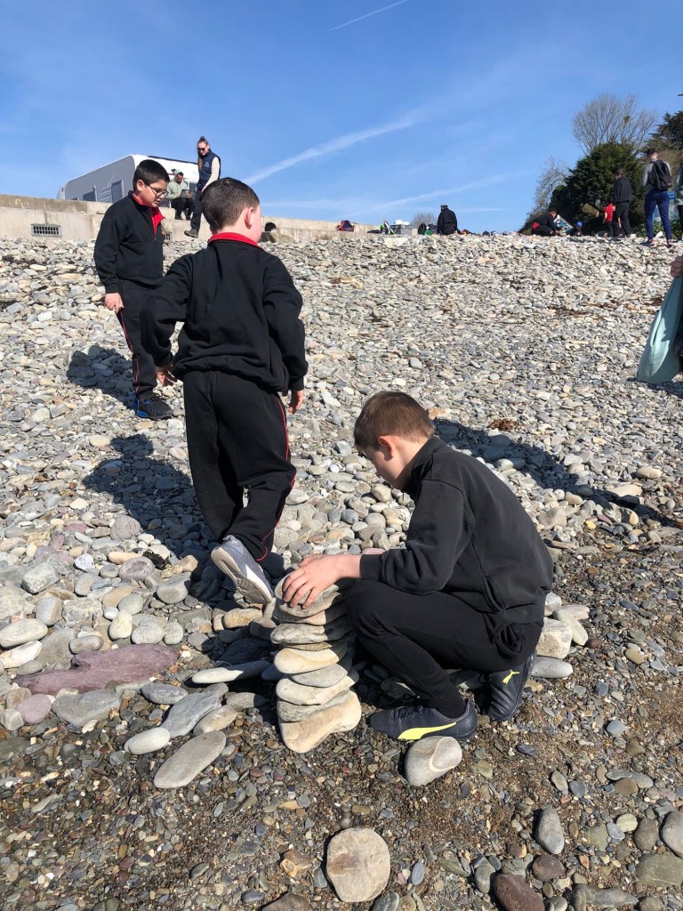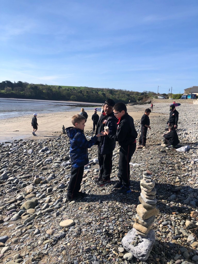 Yesterday both third classes went to Fountainstown. We had the best day investigating what creatures live in the rock pools there. We had great fun searching in the rock pools with our buckets and nets. We saw some amazing creatures like three different species of crabs, prawns, different small fish, sea snails, periwinkles, different types of seaweed and some anemones. We also made some rock cairns on the beach and had some fun looking for rocks of different shapes and sizes. The sunshine made the whole day even better. We were learning so much new information about the seashore that we never knew before which has made us more excited to visit the beach during the Summer holidays with our families to show them what we learned. The day was topped off with a picnic on the beach and a stop off in the playground in Carrigaline on the way home. We went home exhausted but had the best day ever!