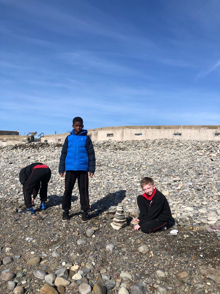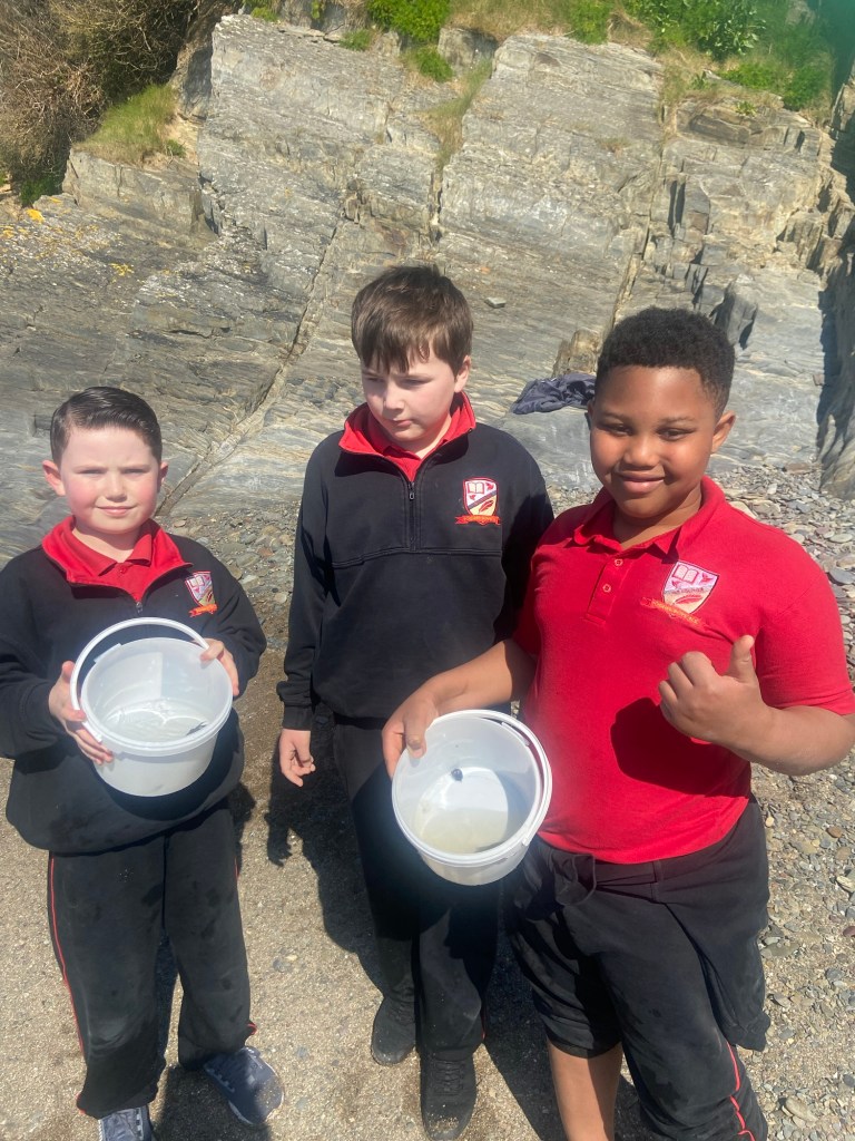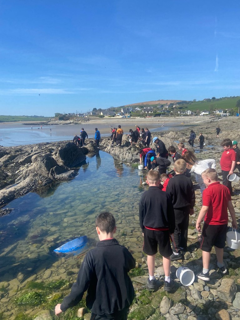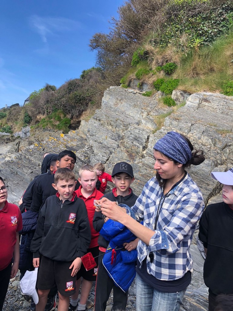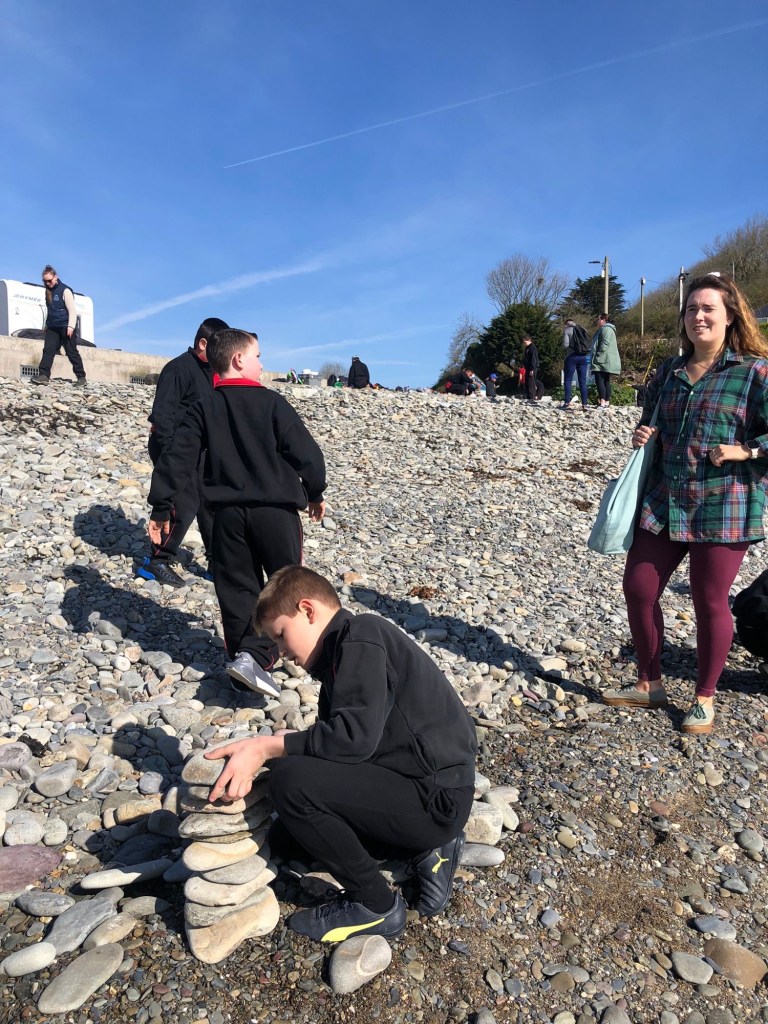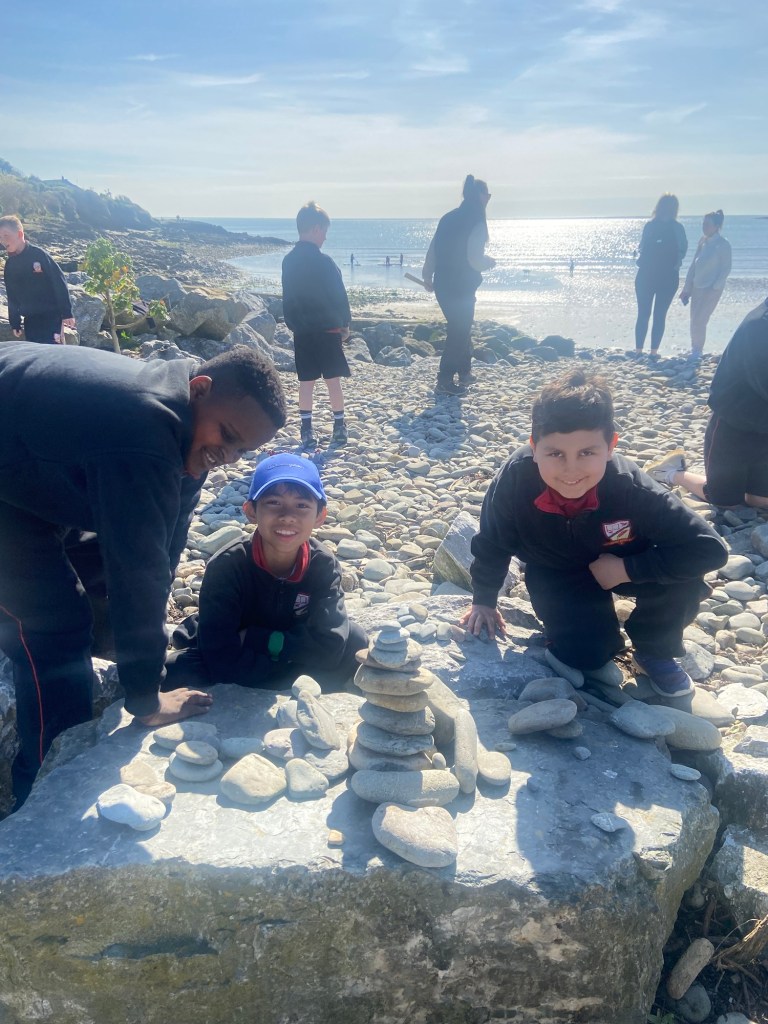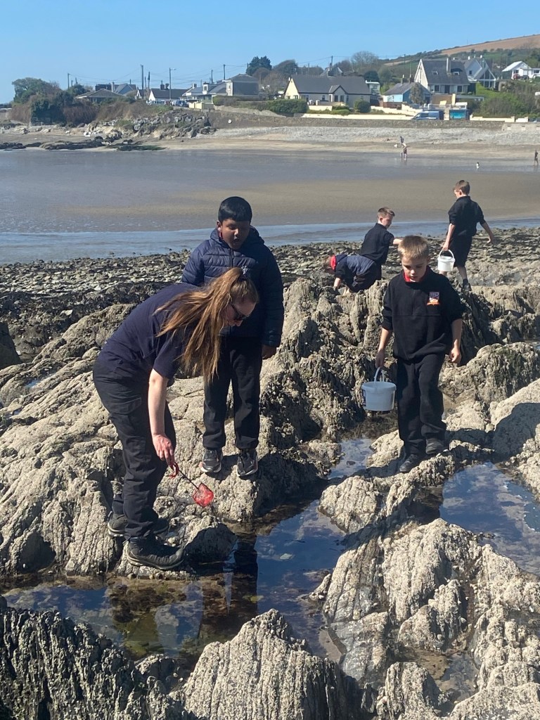 Yesterday both third classes went to Fountainstown. We had the best day investigating what creatures live in the rock pools there. We had great fun searching in the rock pools with our buckets and nets. We saw some amazing creatures like three different species of crabs, prawns, different small fish, sea snails, periwinkles, different types of seaweed and some anemones. We also made some rock cairns on the beach and had some fun looking for rocks of different shapes and sizes. The sunshine made the whole day even better. We were learning so much new information about the seashore that we never knew before which has made us more excited to visit the beach during the Summer holidays with our families to show them what we learned. The day was topped off with a picnic on the beach and a stop off in the playground in Carrigaline on the way home. We went home exhausted but had the best day ever!