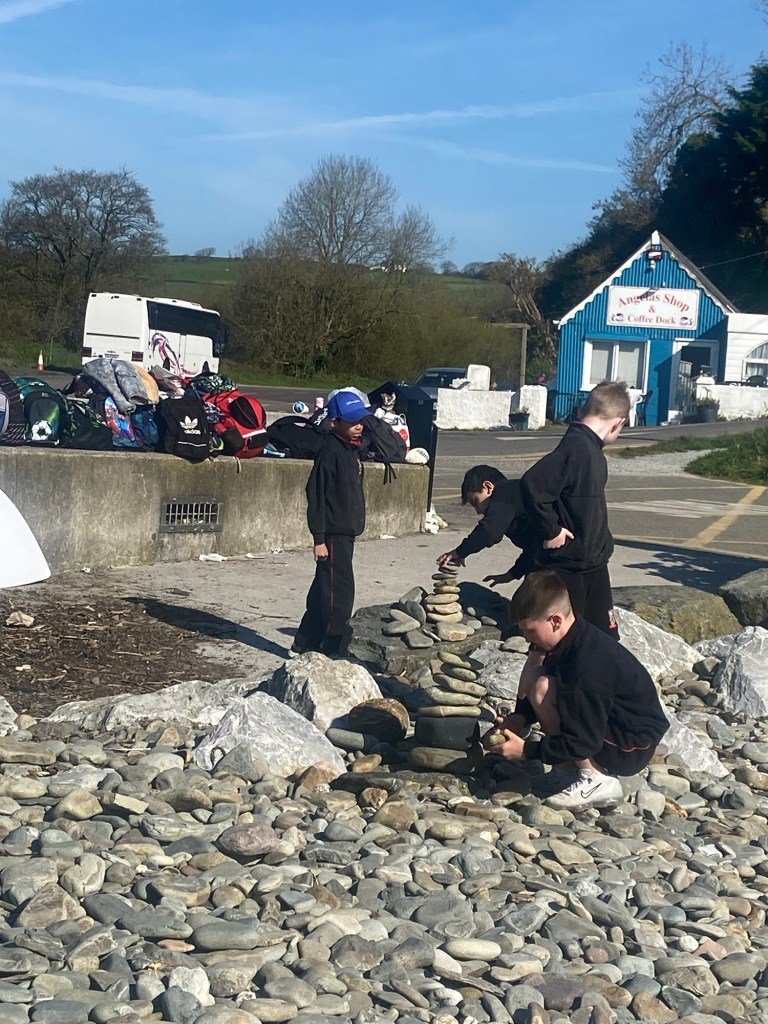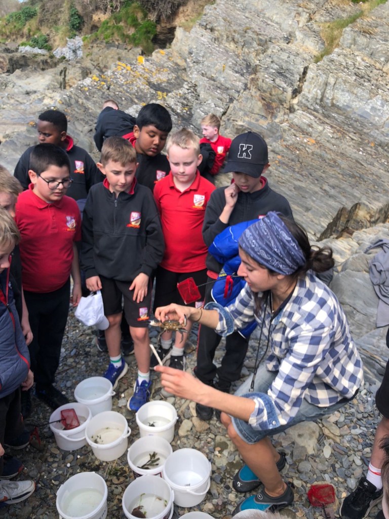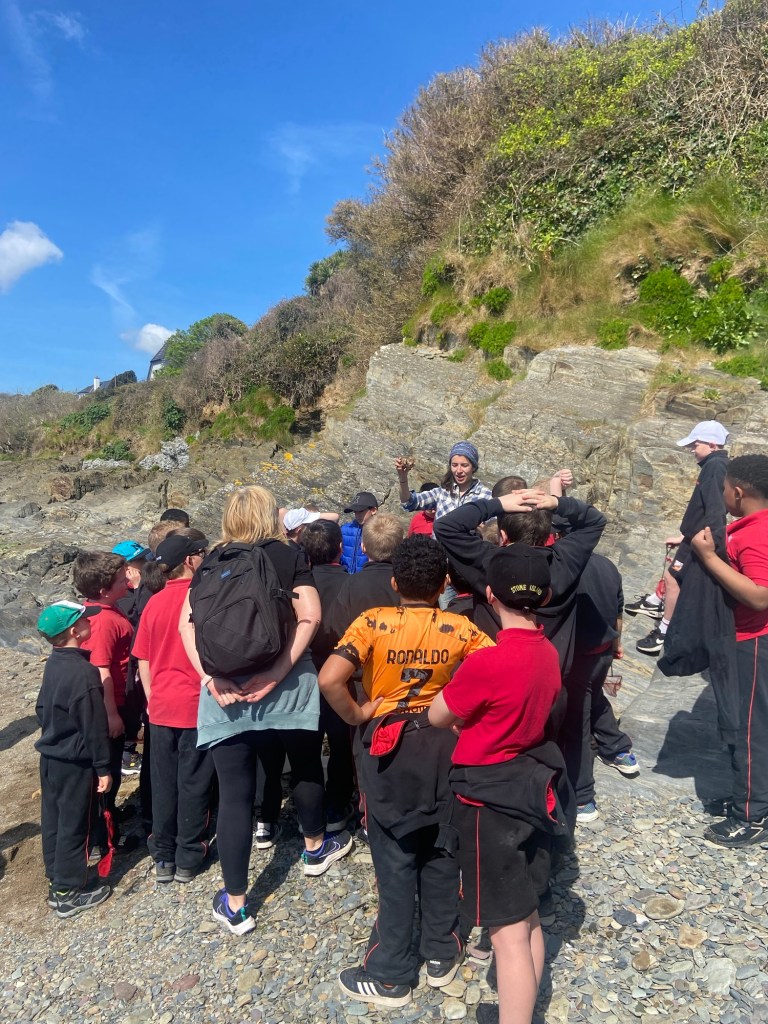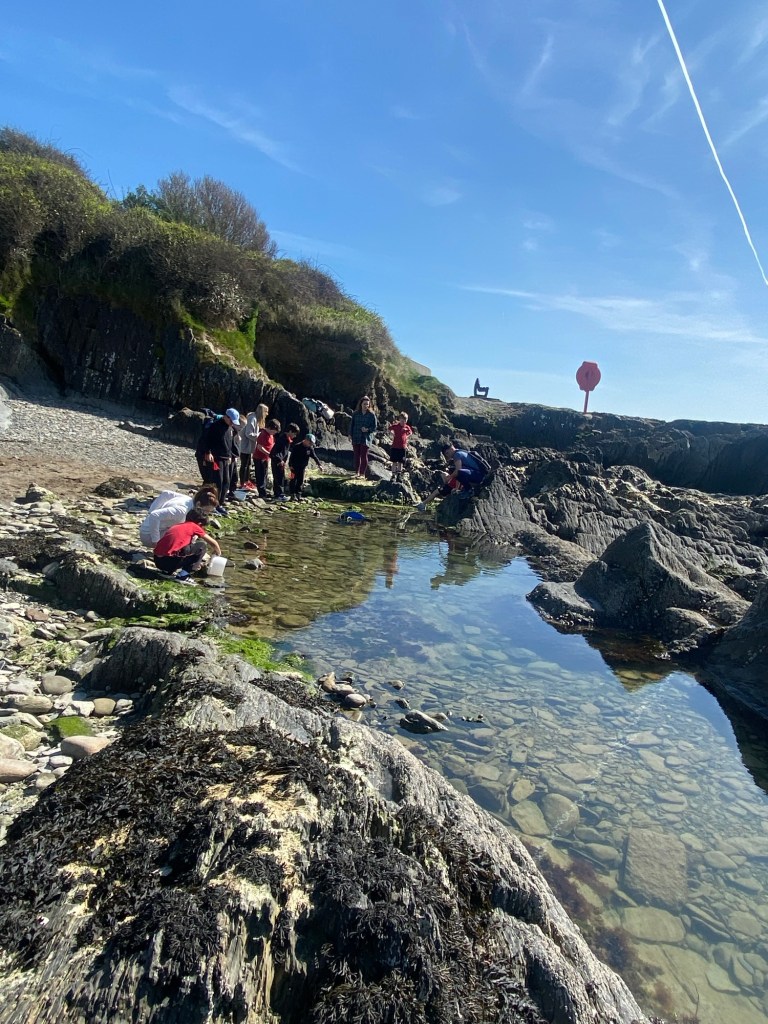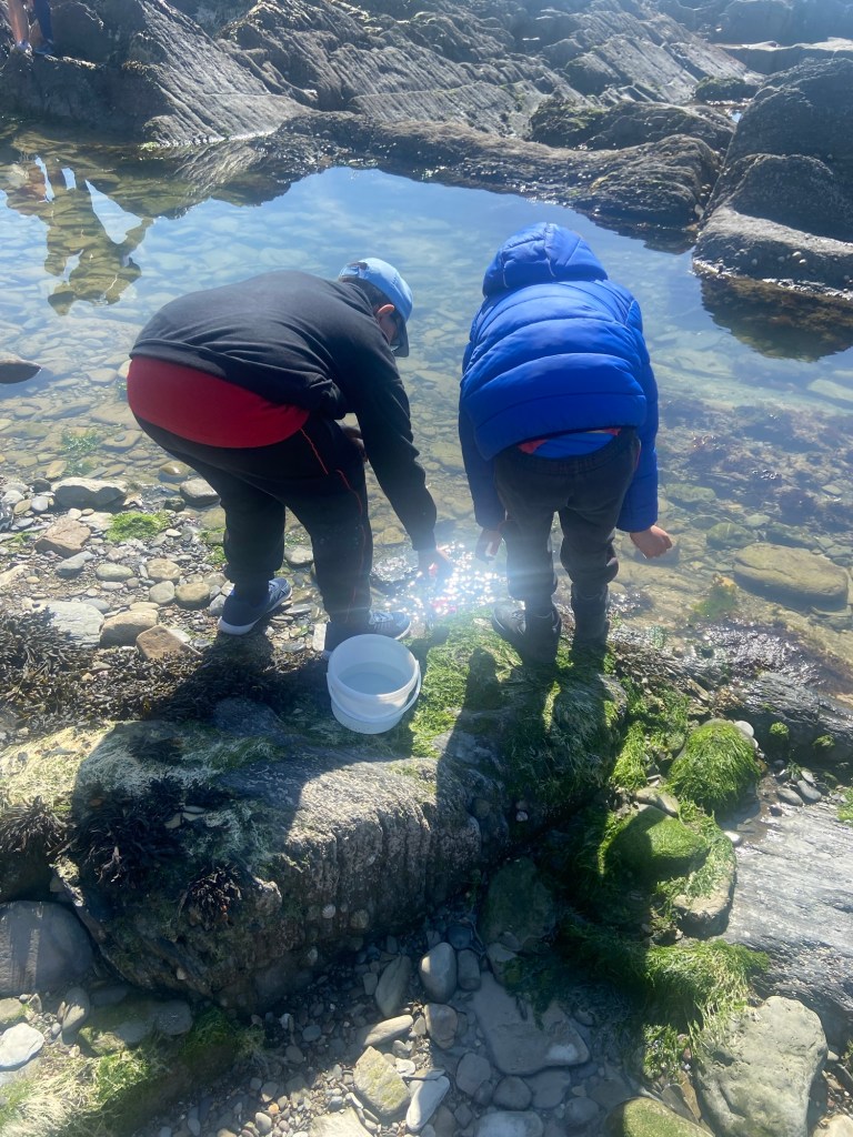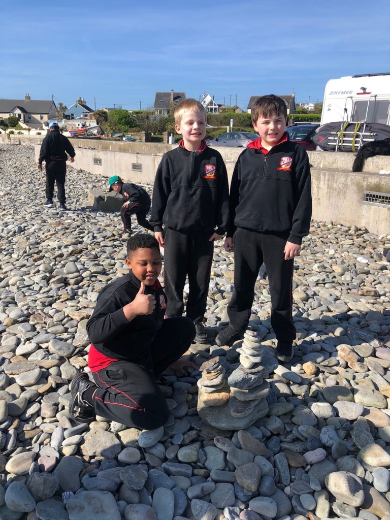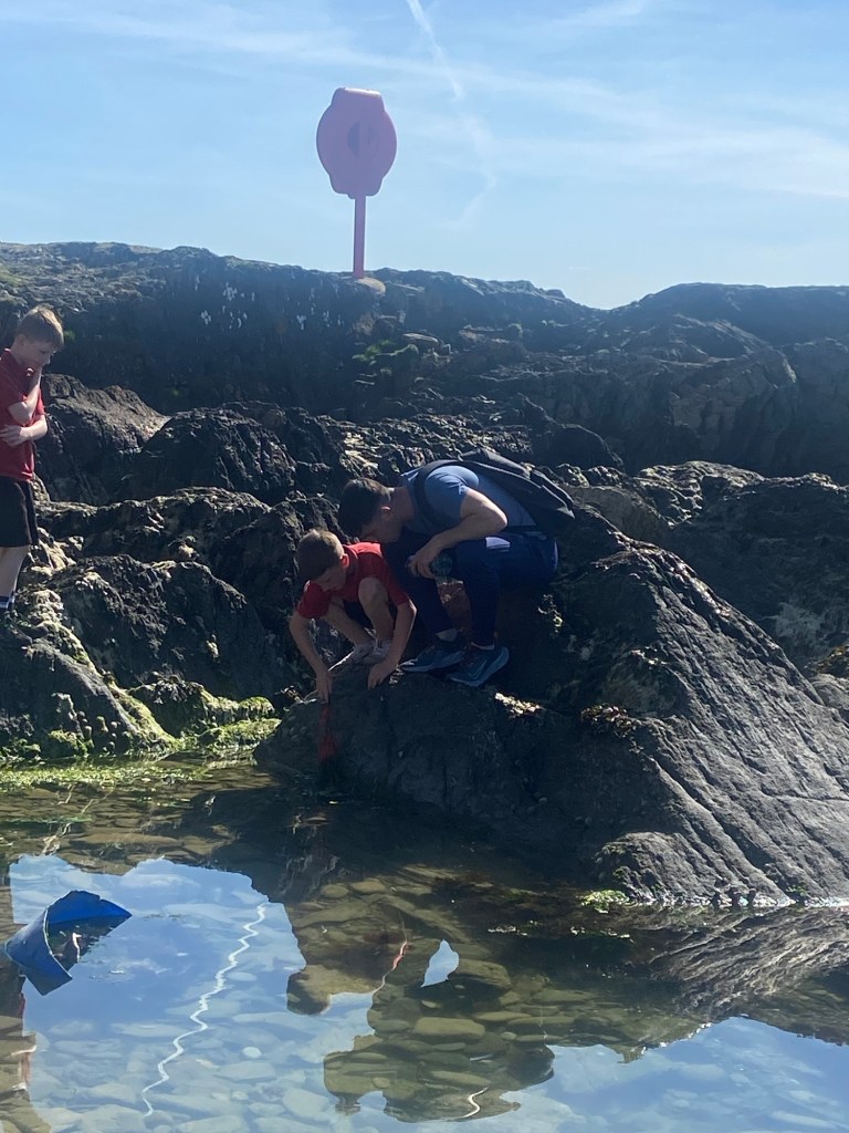 Yesterday both third classes went to Fountainstown. We had the best day investigating what creatures live in the rock pools there. We had great fun searching in the rock pools with our buckets and nets. We saw some amazing creatures like three different species of crabs, prawns, different small fish, sea snails, periwinkles, different types of seaweed and some anemones. We also made some rock cairns on the beach and had some fun looking for rocks of different shapes and sizes. The sunshine made the whole day even better. We were learning so much new information about the seashore that we never knew before which has made us more excited to visit the beach during the Summer holidays with our families to show them what we learned. The day was topped off with a picnic on the beach and a stop off in the playground in Carrigaline on the way home. We went home exhausted but had the best day ever!