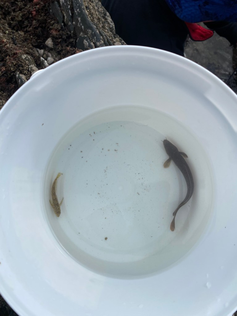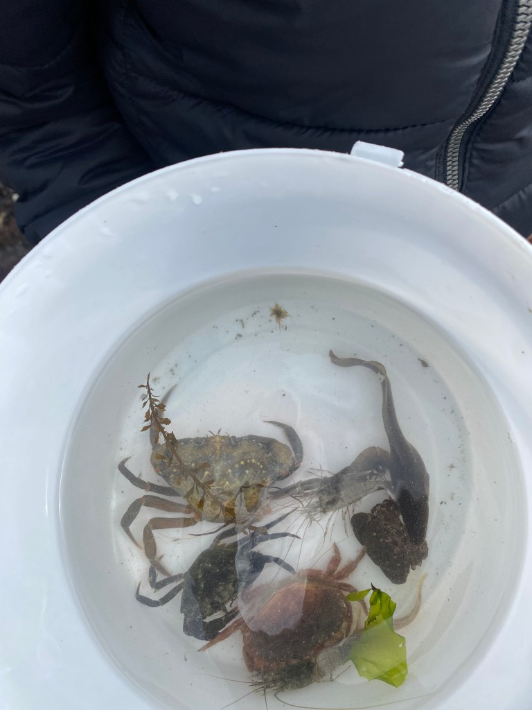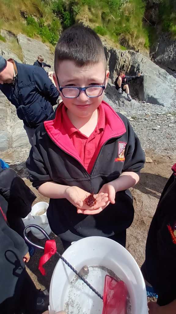 The boys then headed over towards the rock pools with their nets and buckets in search of some sea creatures. Our Safari guide gave us lots of information about periwinkles, limpets, top shells and barnacles. The boys found an impressive amount of sea creatures including many species of crabs, rock pool prawns, blennys, rock gobys and the very impressive sea scorpion!