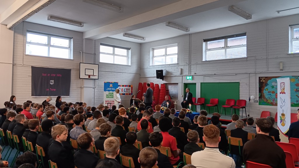 Friday 17th May was a big occasion for the school as we had a visit from the Bishop of Cork and Ross. Bishop Fintan visited classes throughout the school, taking time to chat with the children in each class. The bishop was very impressed by the school and the kind and friendly nature of the boys. He also spoke very highly of the community in Togher. The boys did themselves proud, showing great interest in the bishop and demonstrating the togetherness and inclusivity of Togher Boys school.
