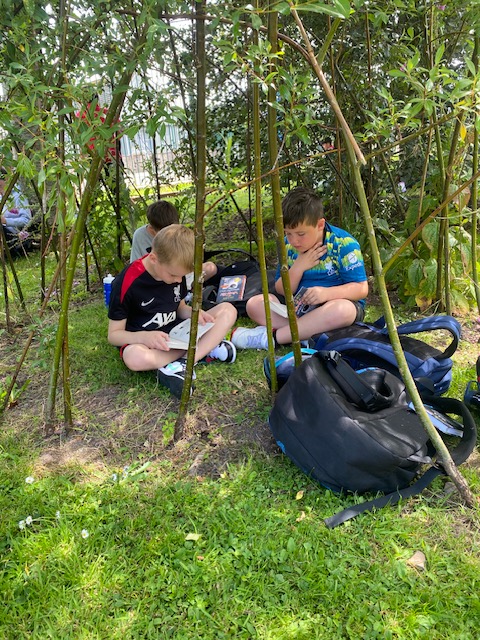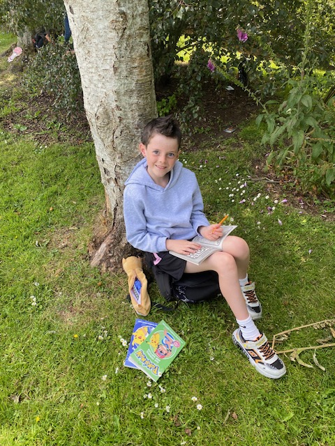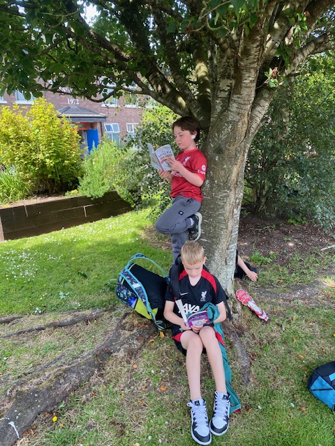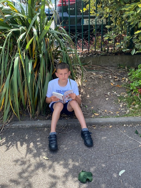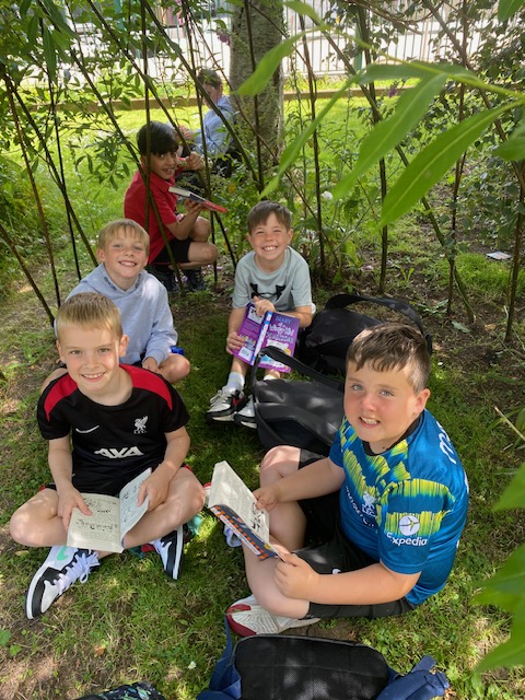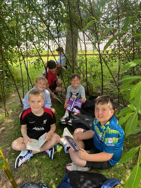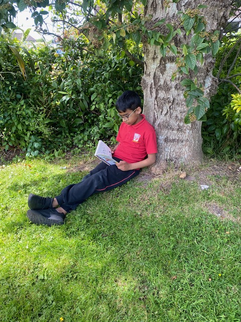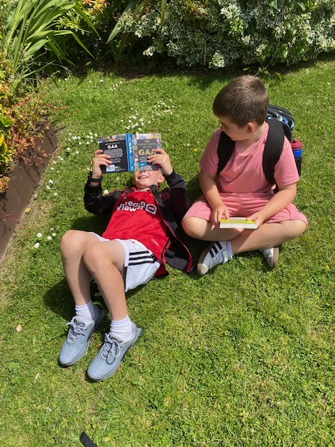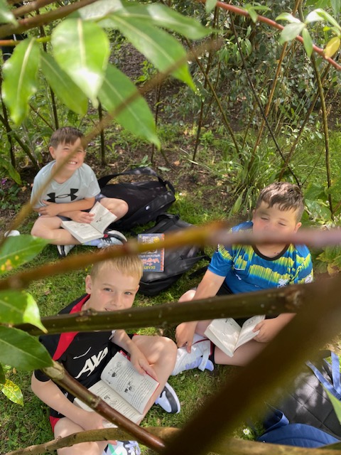 Second class boys were thrilled to receive their third take-home novel this year. They took advantage of the seasonal warmth and dived into their new titles in the school garden.
