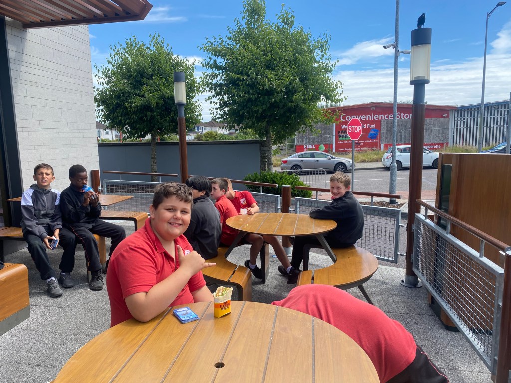 On Thursday Mr. Bergin and Ms Mc Gloin brought the two fourth classes to McDonalds. Eager and full of energy, they set off, chatting and laughing along the way. The walk gave the boys a great opportunity to enjoy the fresh air and beautiful sunshine. The boys were delighted with their happy meal and treats after the long walk.