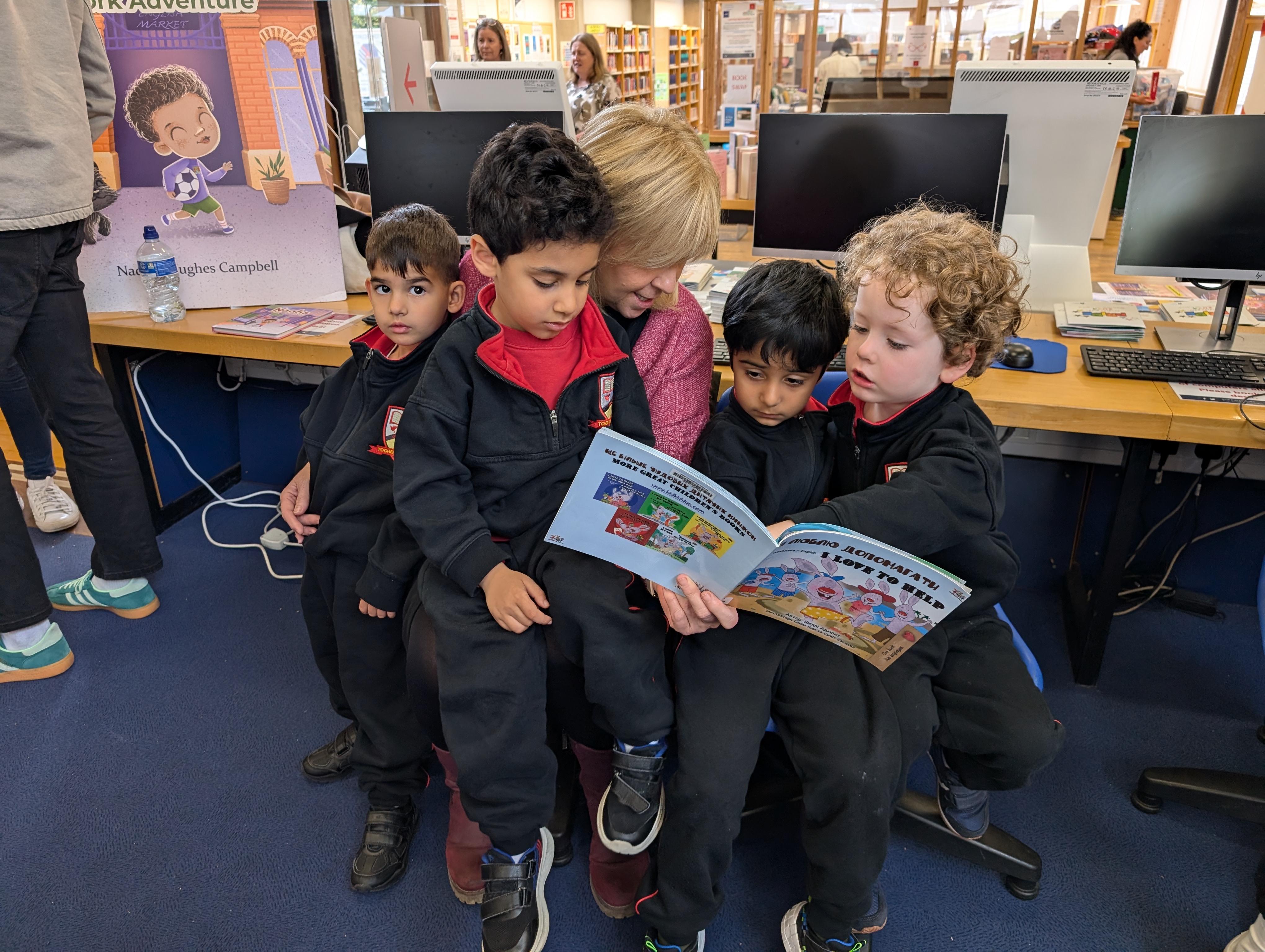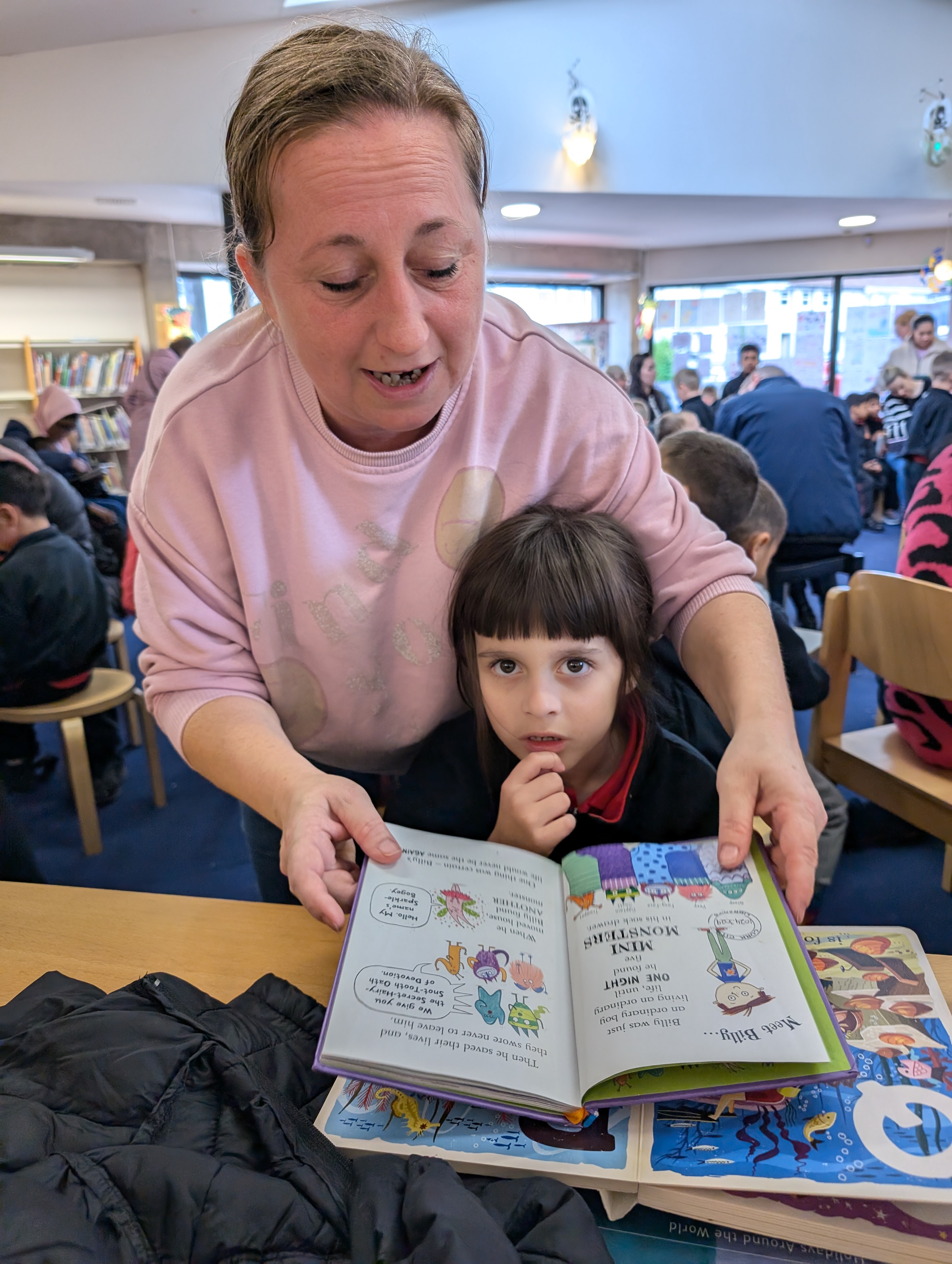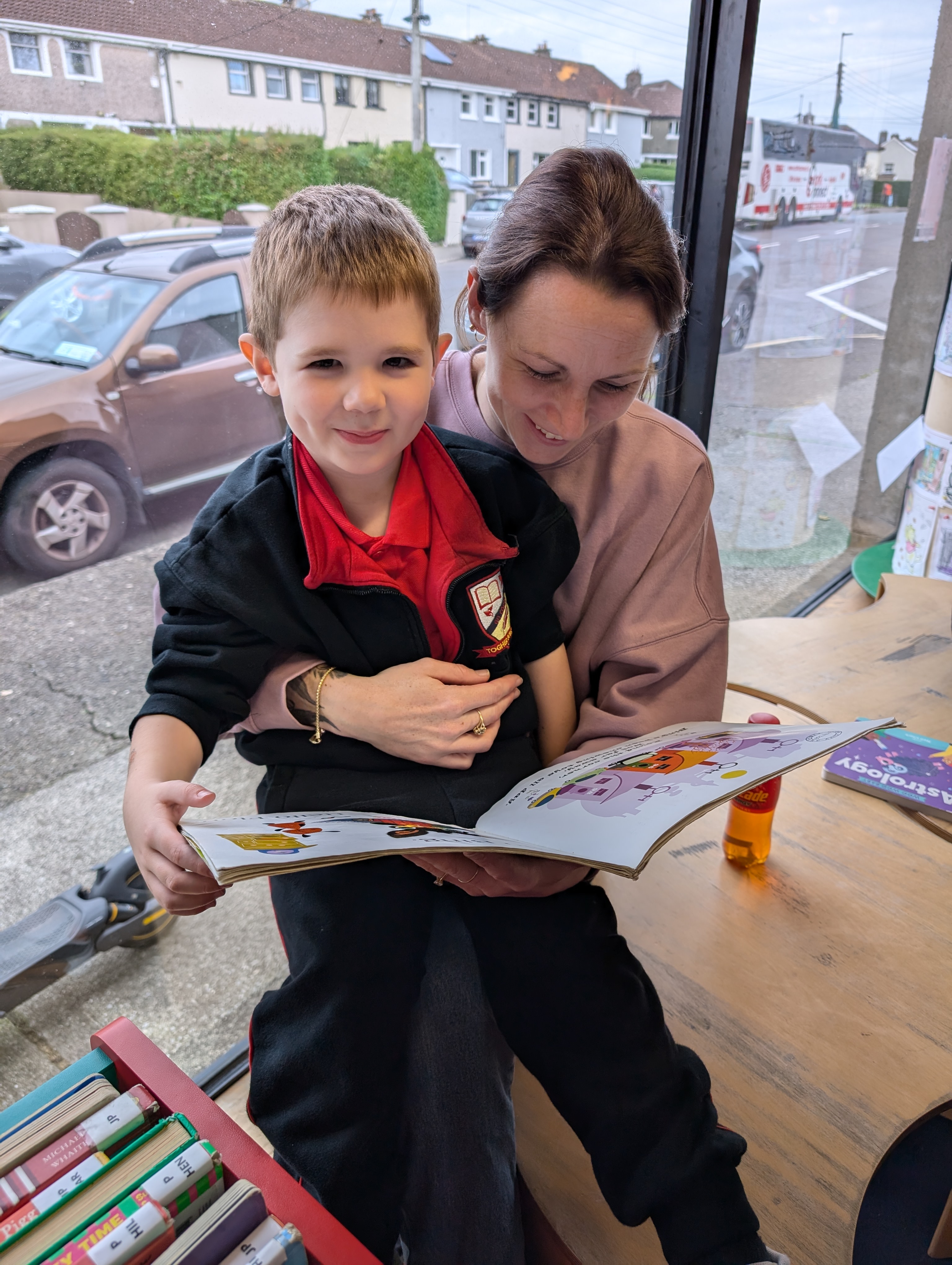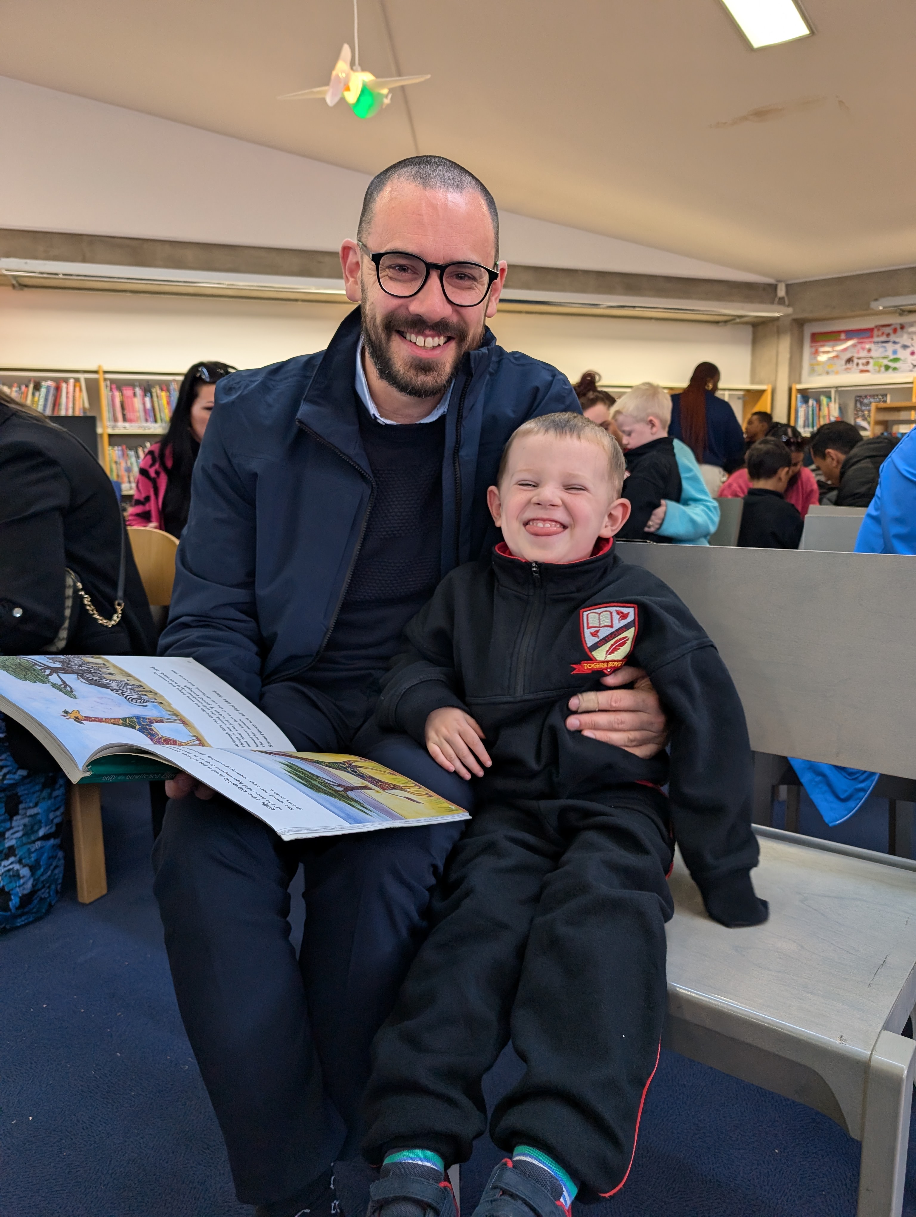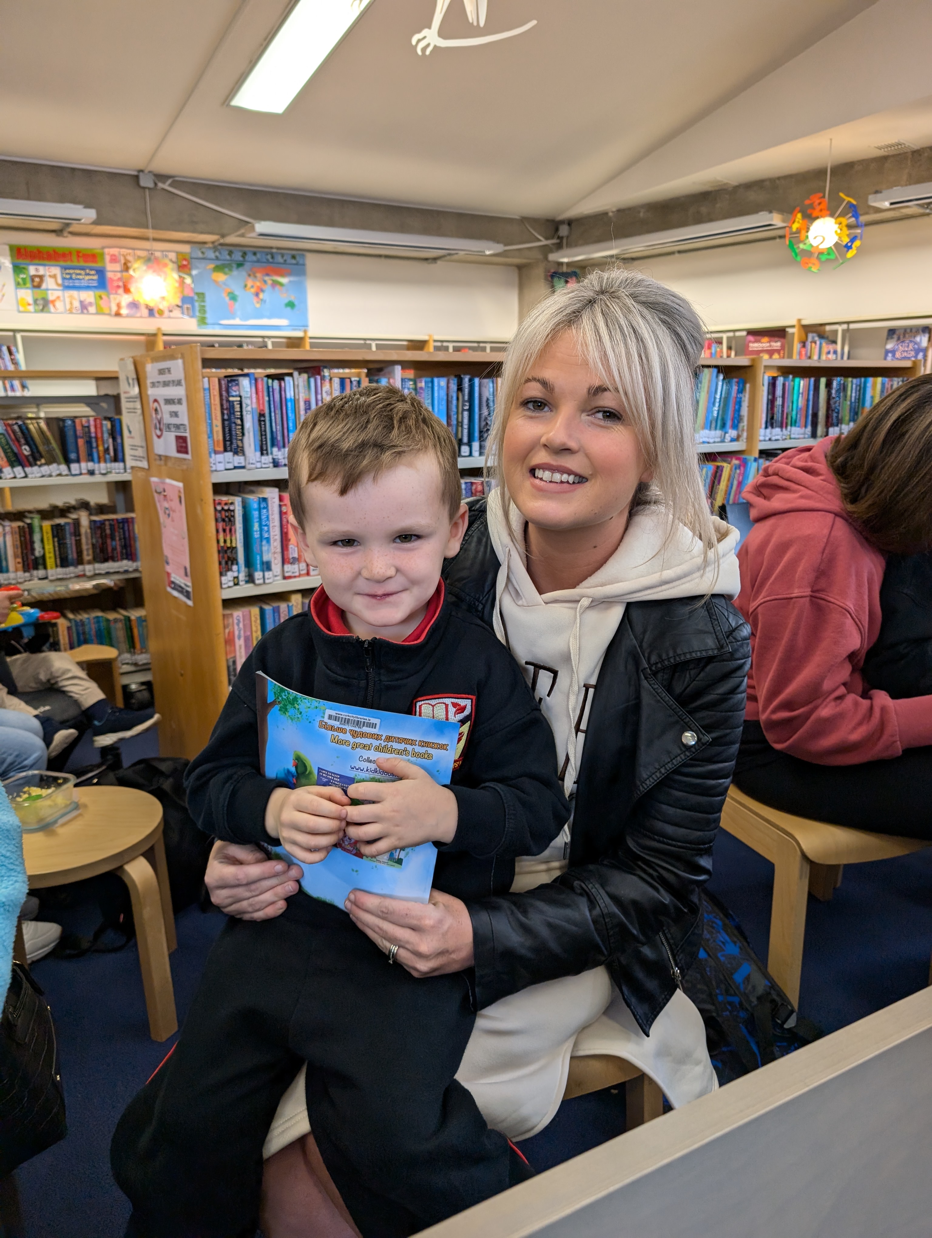 After listening to Nadine read her books, the boys got the opportunity to sit with their parents and family members to engage in some shared reading. This was a lovely opportunity for the boys to look at some lovely books and see what the library has to offer. It was a lovely morning and we all really enjoyed our visit. Hopefully we will visit the library again soon as we all love to listen to stories and read books together. Thank you to Ms Manning for organising the trip and for all the staff at Tory Top Library for making us feel so welcome!