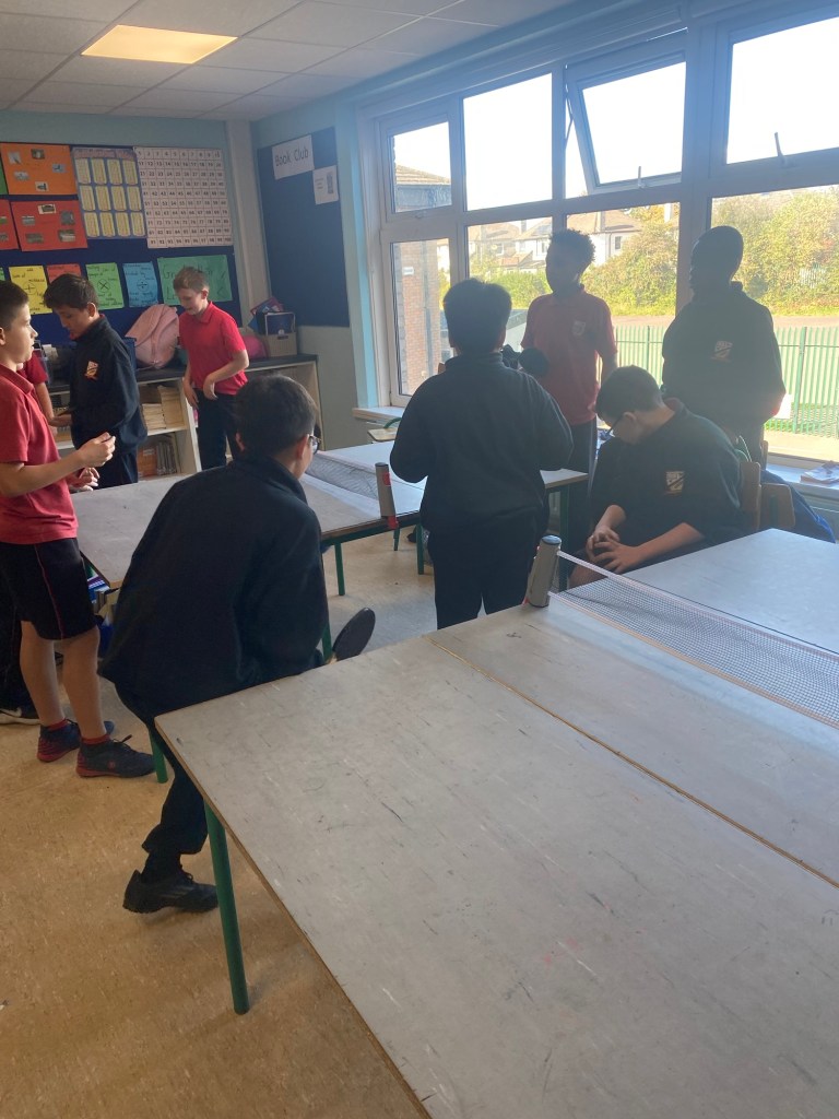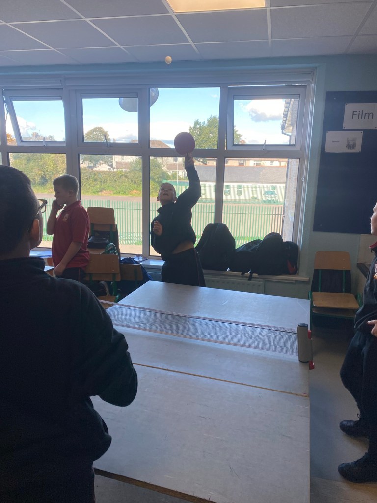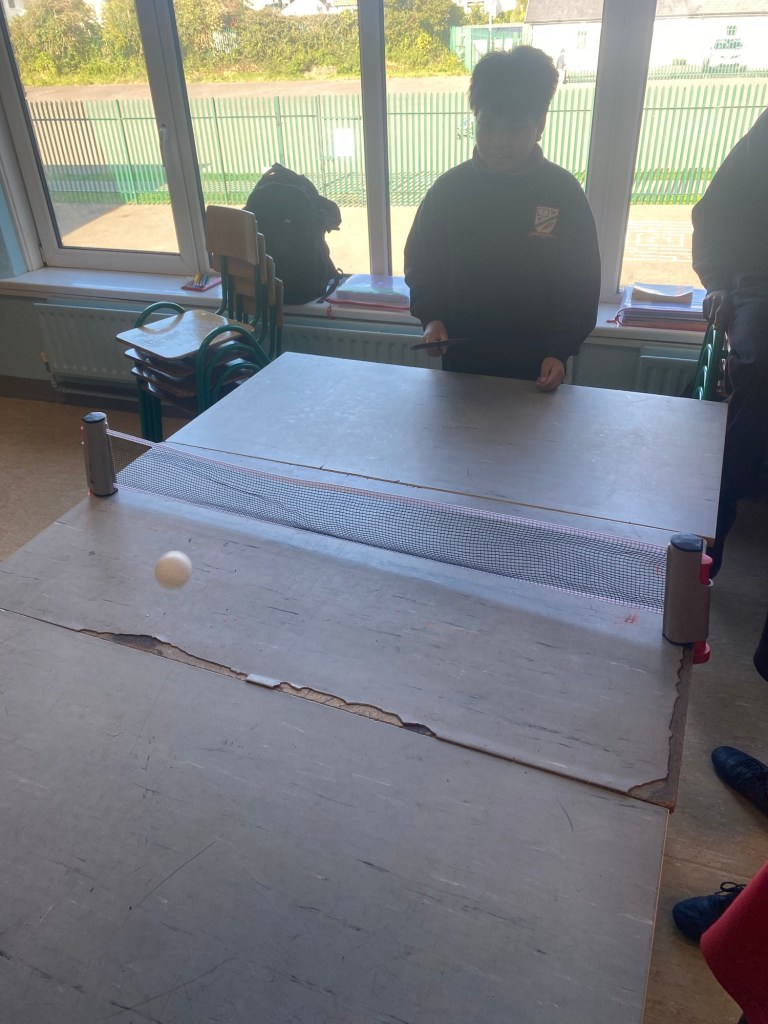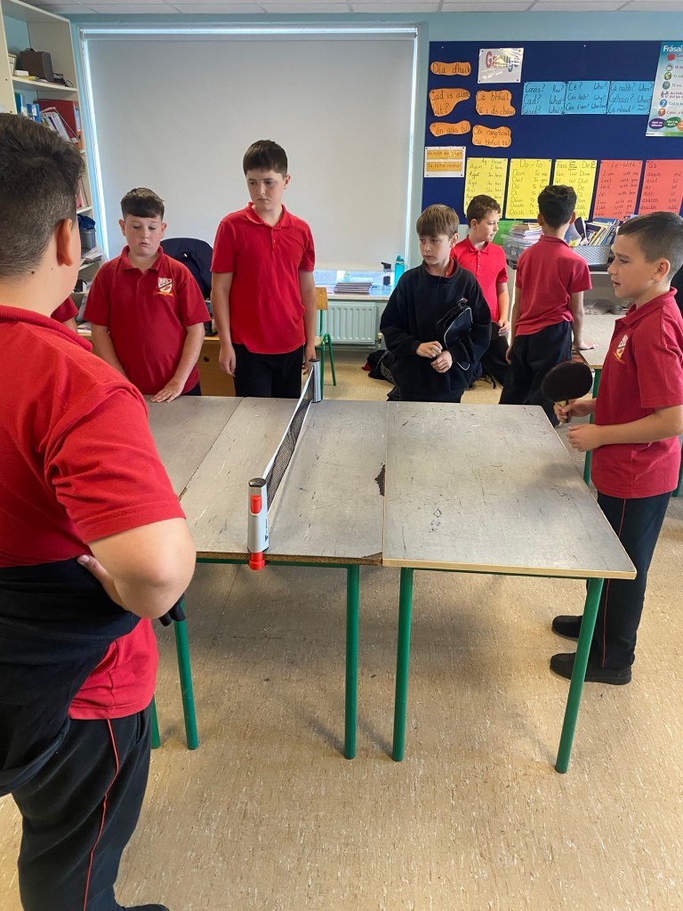 Boys from 3rd,4th, 5th and 6th class have been enjoying the table tennis equipment recently. On wet days, Fridays and after school, the table tennis is extremely popular with the lads as they show off their impressive skills