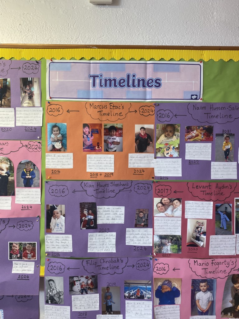 They collected photos to represent these different stages and made lovely timelines, which they have displayed on the corridors for other pupils to read and enjoy!
