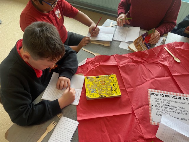 Ms Mc Gloin’s fourth class invited Mr. Bergin’s class to their book tasting event on World Book Day. The boys chose a book they would like to preview from a menu of genres. Orders were taken and books delivered to tables to be sampled and rated. We had great fun. It was a great opportunity to try out some new books and celebrate reading.
