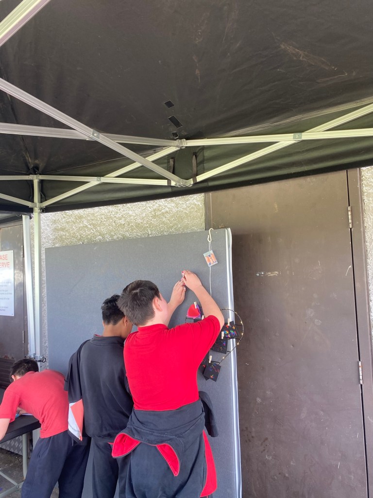 Then we all went over to athletics. We did javelin throwing and running. The coach did a thing where he put his hands out like an American Football goal and if you hit his arm you get 5 points, if you through his arms you get 3 points and if you hit below his body your team get 1 point. After that we did running jumping and hurdles we had to jump of the ladder on the floor go around the cones and then jump over the hurdles. There were bottles of water availible for us to take and I took one and poured it on my head because it was roasting.
