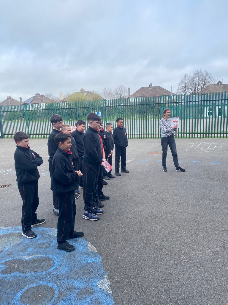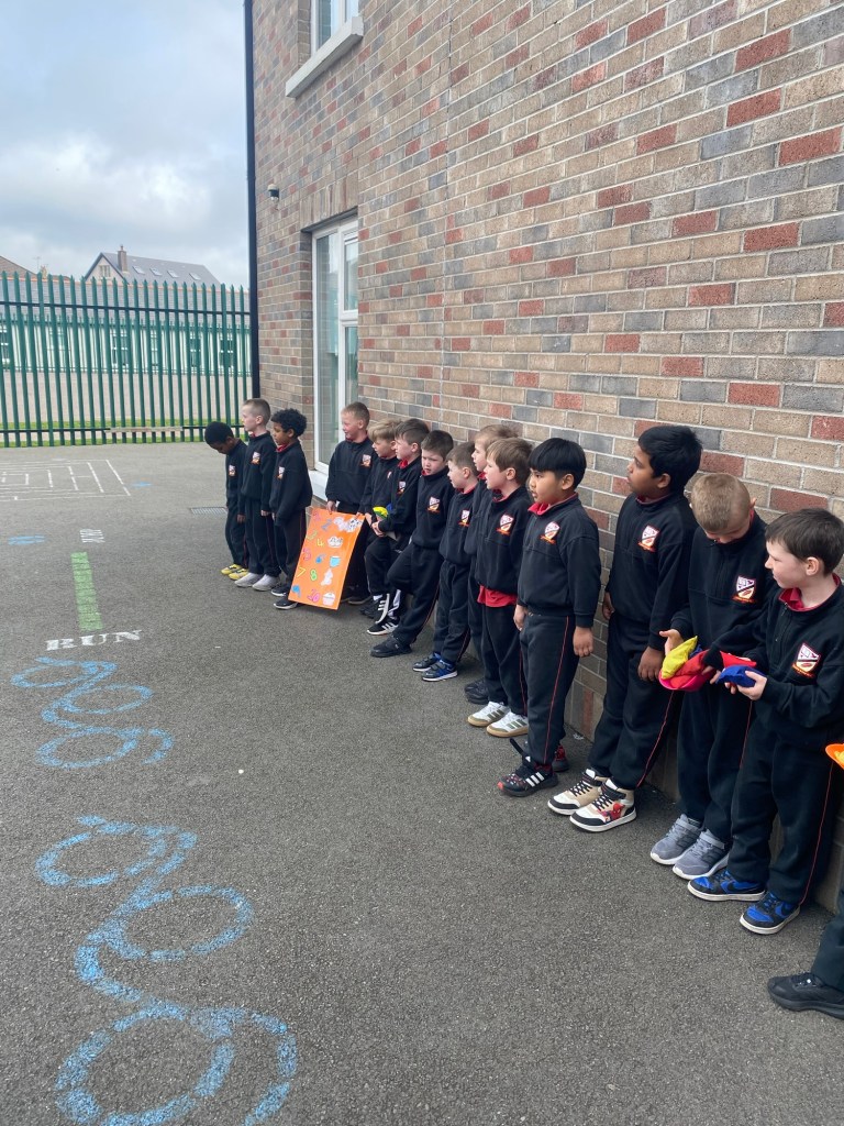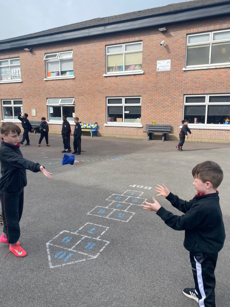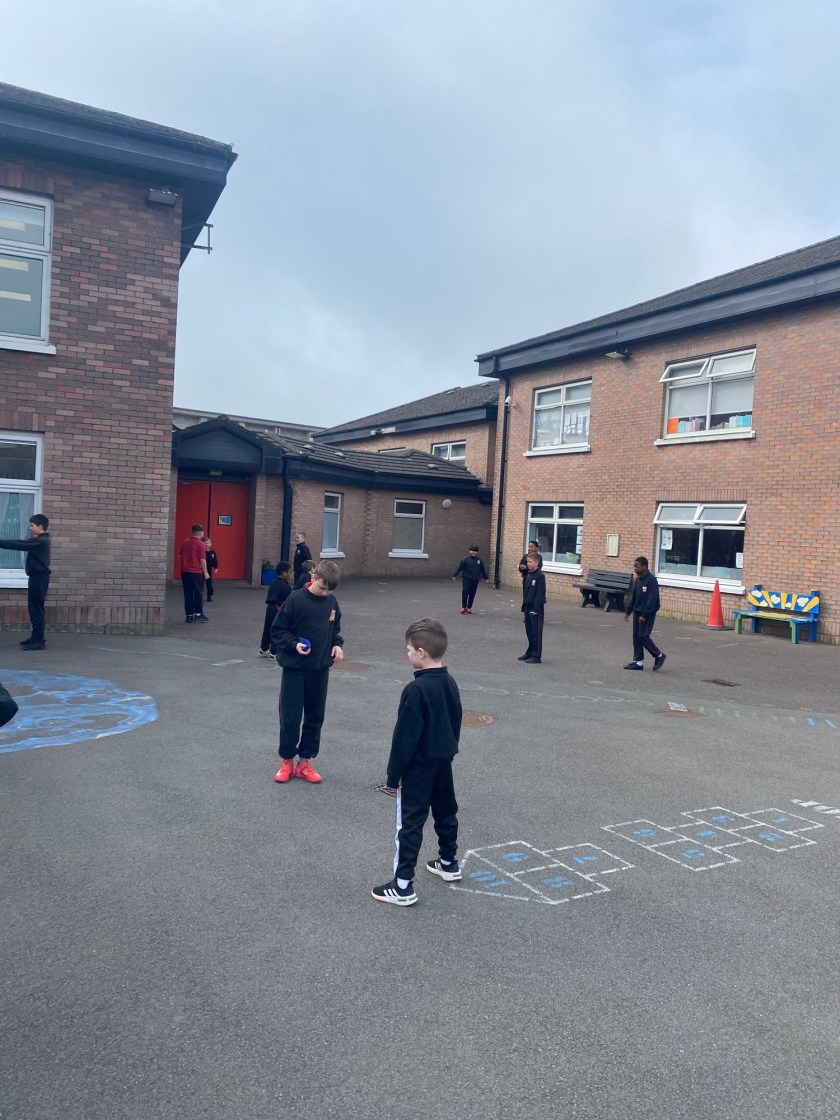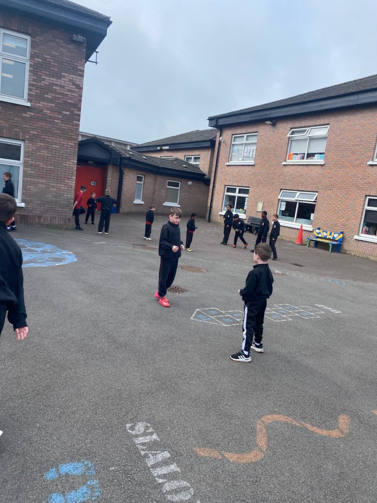 Bhí maidin le dealramh againn le deanaí nuair a chaith buachaillí Rang 5 agus Naíonáin Mhóra seal amuigh sa chlós ag plé lena chéile as Gaeilge.
