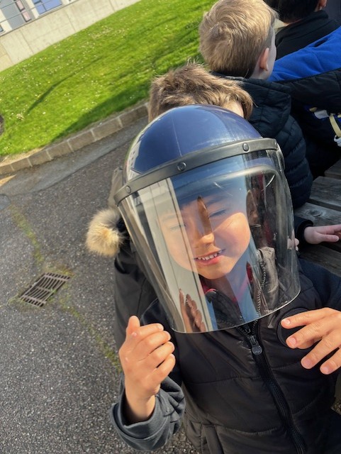 The boys had lots of fun looking around the station , trying different equipment and seeing the different vehicles the gardaí use. We would like to say a huge thank you to Garda Kate , our local community garda , for arranging the trip and showing us around!
