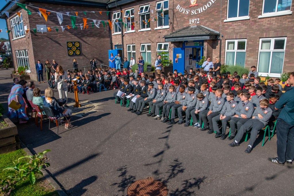 Monday was a very special day in Togher Boys’ as we were honoured to receive a visit from An Taoiseach, Micheál Martin. The Taoiseach called to chat to the boys about having a healthy lifestyle and check out some of our new playground equipment which was generously donated by Novo Nordisk. He spoke to the boys about the importance of exercising, being active and his own fond memories of playing sport in Togher. He explained to the boys that the best doctors in the world have told him that playing sports and doing exercise is the best medicine anyone could ever have. The boys then sang beautiful city for the Taoiseach which as a proud Cork man, he really enjoyed. Sincere thanks to An Taoiseach for taking the time to visit us and chat to the boys. We would also like to thank Novo Nordisk for their donation and helping us to be a healthy, active school.