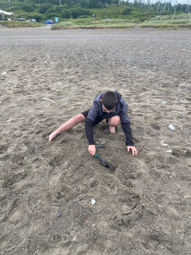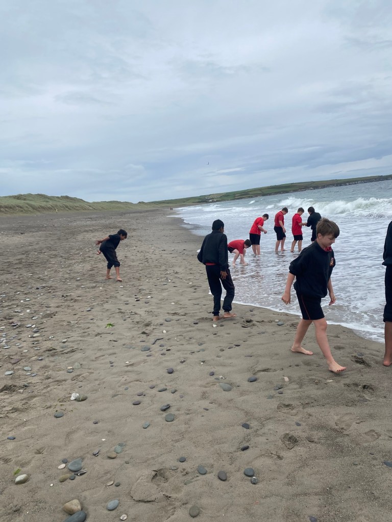After a trip to Super Valu to buy our lunch, we went to the Long Strand Beach. Here the boys enjoyed their lunch before played hurling and football, digging holes, making sandcastle and skimming stones!