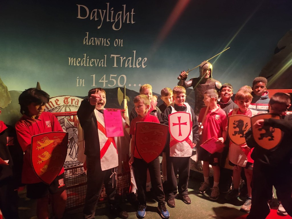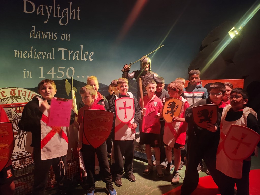 Inside the museum, the class took part in two activities. First, they became young archaeologists, taking part in a hands-on dig and learning all about how archaeologists uncover clues from the past. It was both educational and great fun, with everyone getting involved and discovering something new. Next, the group journeyed back in time with a walk through medieval Tralee. The museum’s immersive exhibits brought the history of the town to life, with sights, sounds, smells and scenes that gave the children a real sense of what life was like hundreds of years ago.