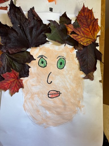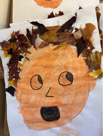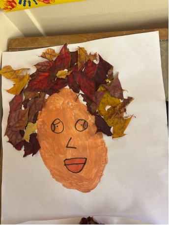 Finally, we used the colourful crunchy leaves collected on our autumn walk for leaf art. Having learned about Leonardo da Vinci and his portraits and self-portraits, we mixed colours to create our own self-portraits and used the leaves as hair! We hope you like them!!!!