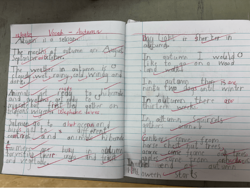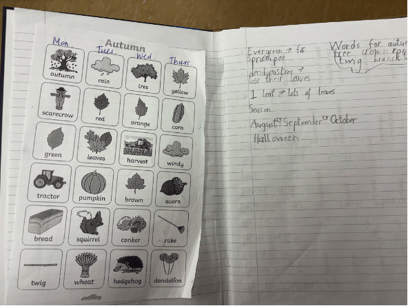 We picked autumn as our weekly oral language topic and learned lots of new vocabulary such as deciduous, migration and hibernation. We recorded these in our vocab notebooks and used them to write independently about autumn at the end of the week.