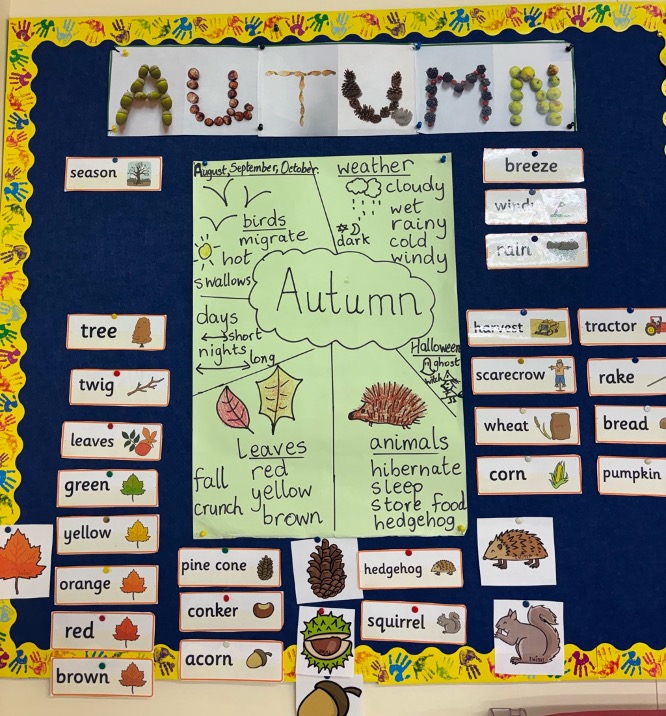 In first class, we have been celebrating the season of autumn. We learned about the months of autumn, how the weather changes, the farmer’s harvest, and how nature and animals prepare for the winter.