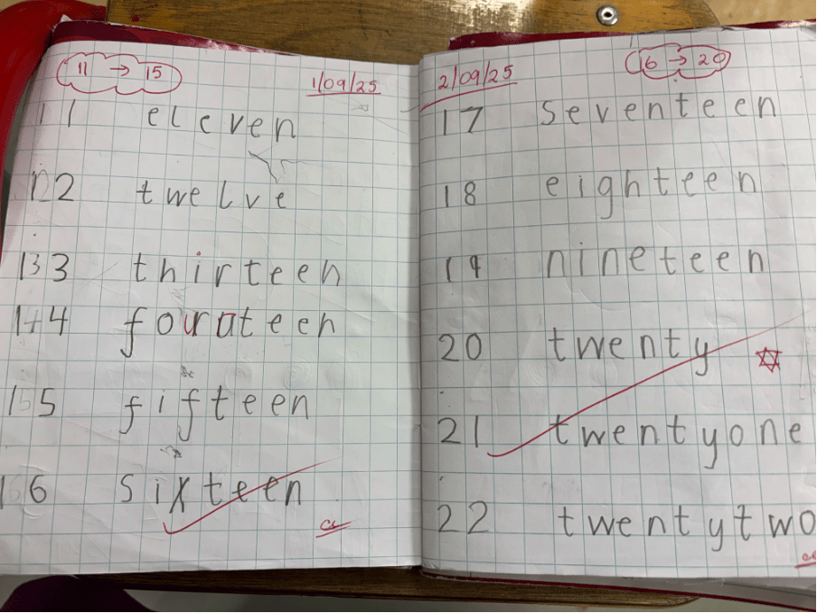 We are becoming tables experts and enjoy playing ‘Around the World’. It can get quite competitive. We practise writing them out if we finish our work early. This helps us revise for our Friday test.