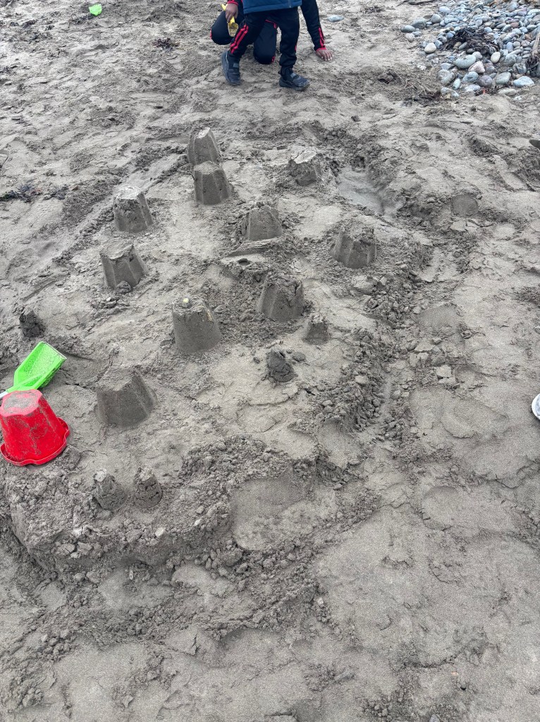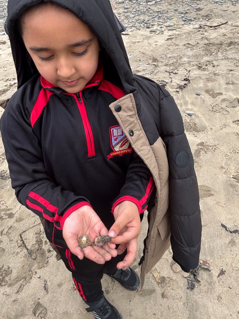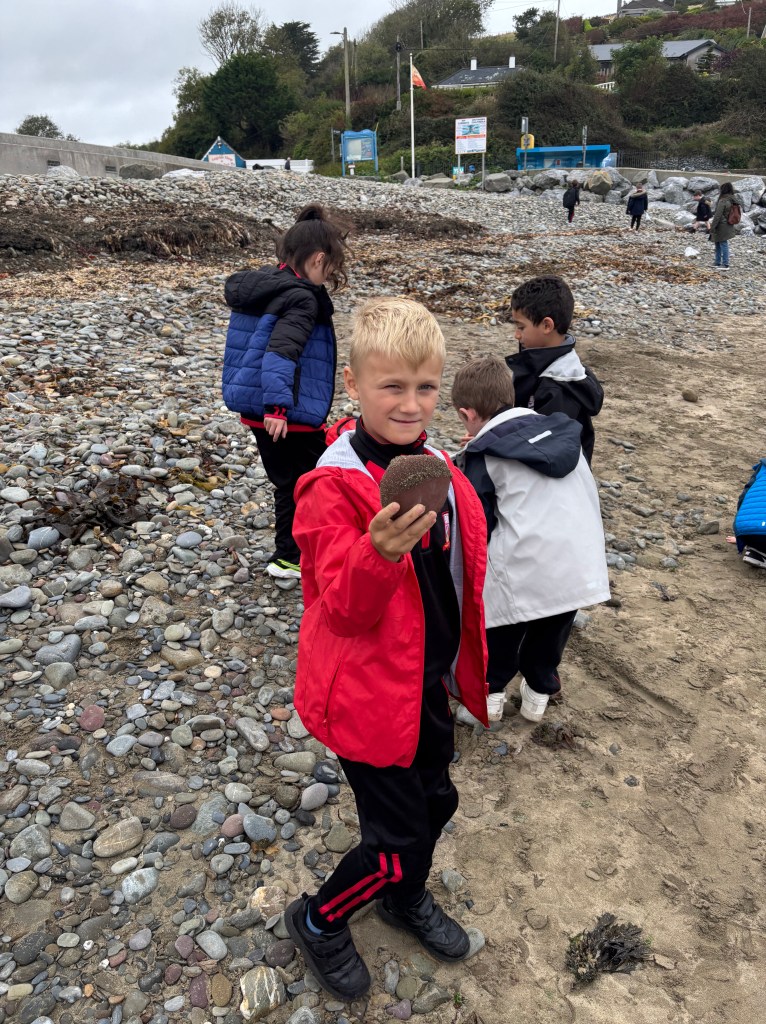 First class enjoyed an exciting trip to Fountainstown Beach, where they used all their five senses to explore the coastline. They found colourful shells and stones of various shapes and sizes. They could smell the seaweed before they saw it! Birds were singing sweetly, waves were crashing onto the shore, swimmers were splashing and boys were shovelling sand to build castles. They climbed rocks where barnacles, periwinkles and crabs were spotted. We returned with a treasure trove of all things nautical for our nature table.