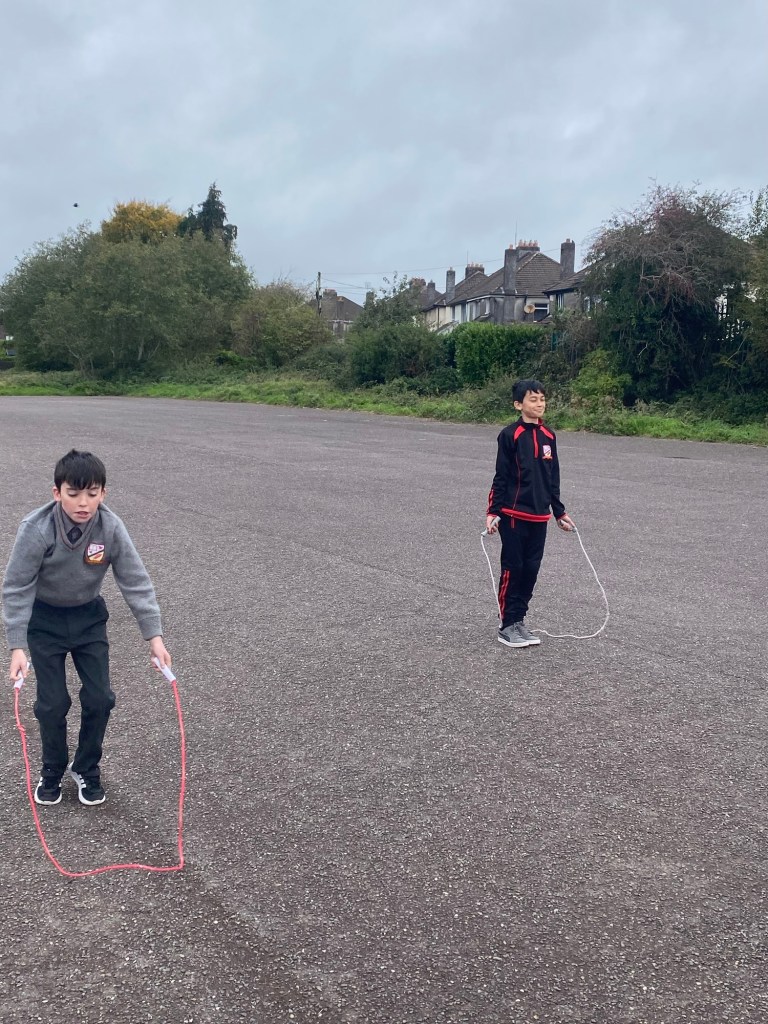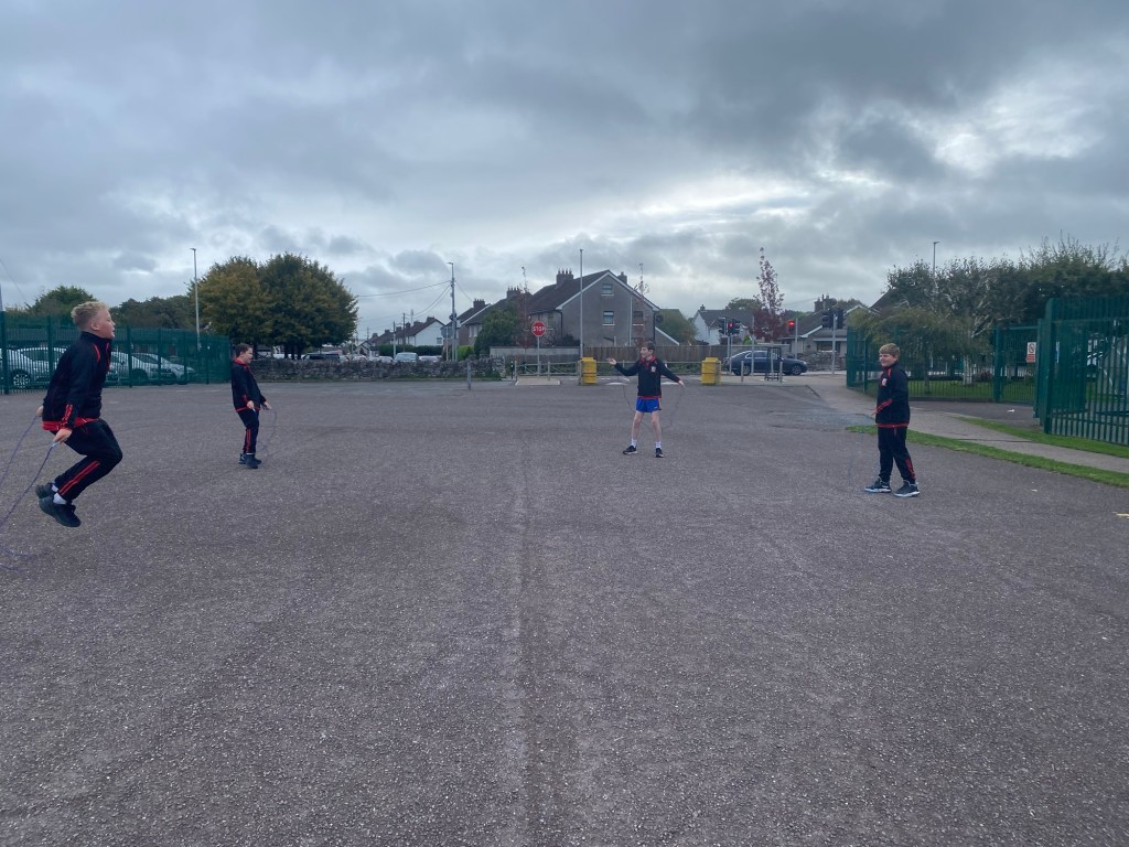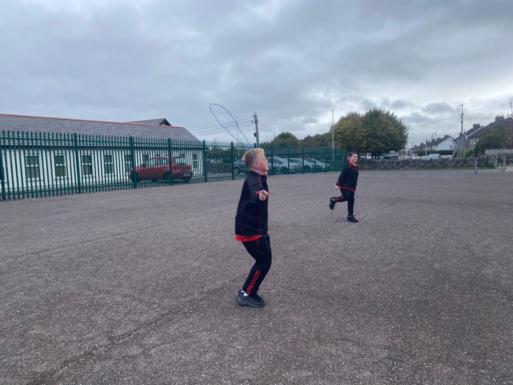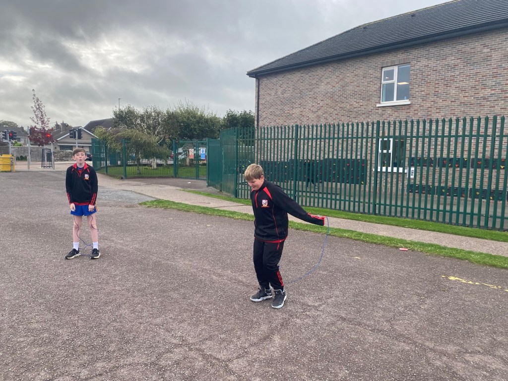 As past of the whole school ‘Skip Around the World’ Initiative, 5th class have been out with their skipping ropes each day. In this initiative, 1 skip = 1 kilometre travelled and the boys so far have collectively made it to Newgrange and the Sahara Desert, via Mount Blanc!!!
