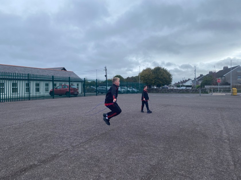 As past of the whole school ‘Skip Around the World’ Initiative, 5th class have been out with their skipping ropes each day. In this initiative, 1 skip = 1 kilometre travelled and the boys so far have collectively made it to Newgrange and the Sahara Desert, via Mount Blanc!!!