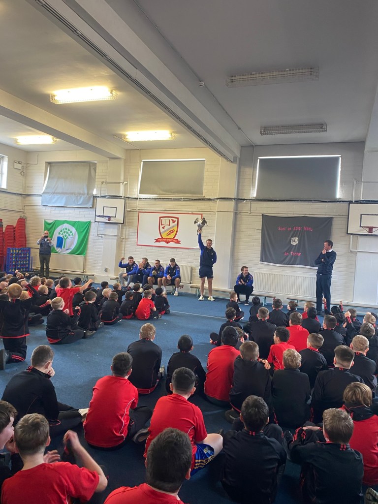 We were thrilled to welcome the victorious St Finbarrs footballers to the school with the county championship trophy in tow. Included in the group were past pupils Stephen Sherlock, Adam Lyne and Eoin McGreevy. They spoke of the importance of hard work, perseverance and enjoying your hurling and football. Hopefully we will welcome them back in December with the Munster championship!!!