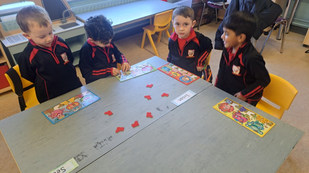 The boys in Junior and Senior Infants and First Class have been participating in Maths for Fun on Fridays for the last 6 weeks. Maths games help the boys to learn in a fun, safe space, bringing a deeper understanding to various mathematical concepts. They help foster problem-solving skills, strategic-thinking, persistence and collaboration while also helping children see the relevance of Maths in real-life situations. They offer opportunities for the boys to develop their social-emotional skills, teaching patience, turn-taking and sportsmanship.
