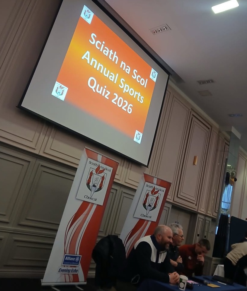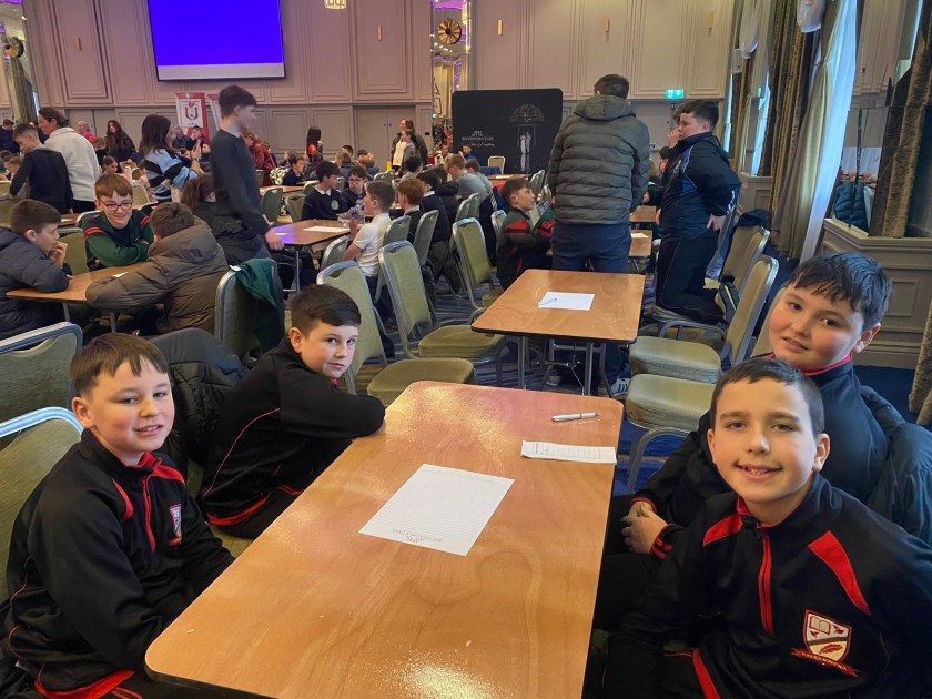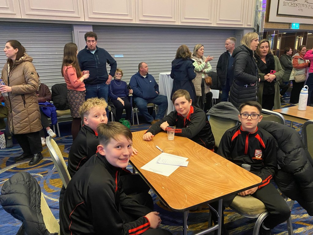 Congratulations to Issac, Emmet, Shay, Oscar, Jamie, Kiall, Kaiden and Alex who represented the school with distinction at the recent Sciath na Scol Sports Quiz in the Rochestown Park Hotel. This was a phenomenal event involving over 80 schools from around Cork. The lads had practiced hard at break time and at home over the past few weeks and demonstrated a broad range of sporting knowledge.