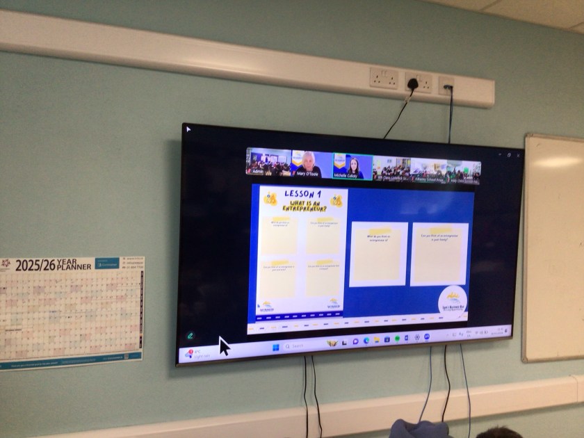 Sixth classes are delighted to be part of this entrepreneurial programme this year. We began our six weeks of lessons this morning by discussing what it is to be an entrepreneur. We were joined by classes from all over the country and it was wonderful to see the collaboration and sharing of ideas.