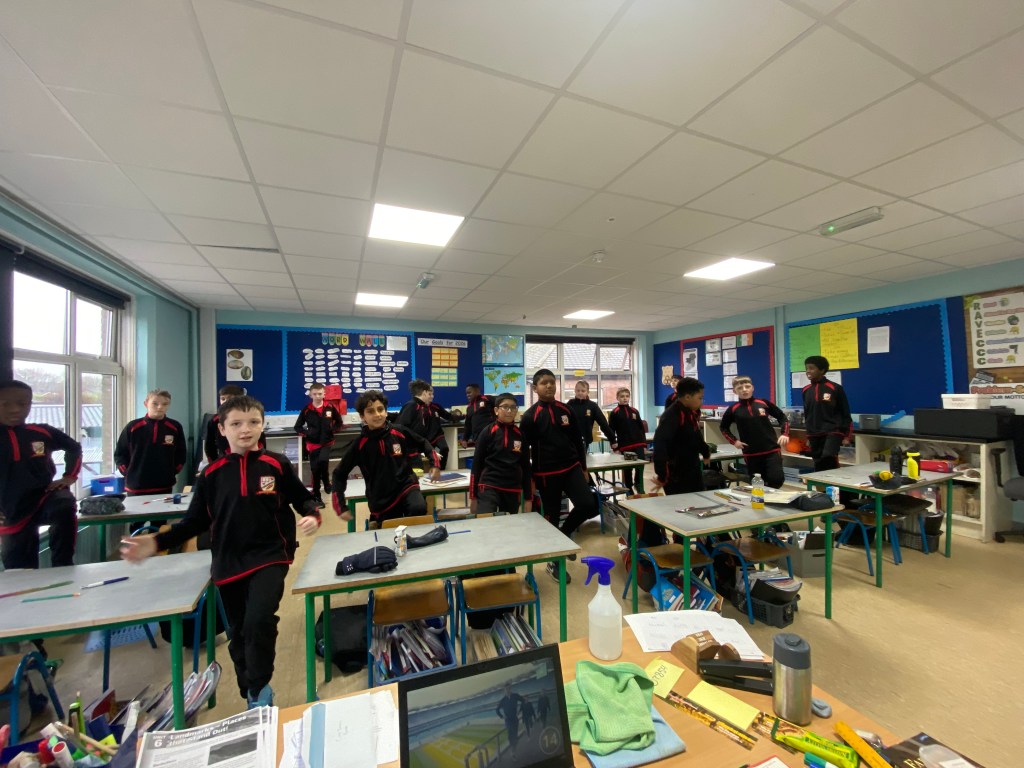 Mr. O’Sullivan’s class have been busy getting stuck into the various Croke Park Movement Breaks. Each day, the class virtually visits a new part of the stadium through a video displayed on the interactive whiteboard. Each new location comes with a new movement challenge.