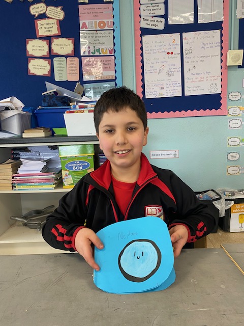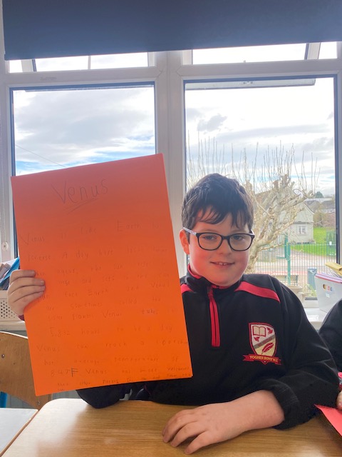 Each boy chose a planet that interested him and carried out his own research. They used laptops to find interesting and reliable facts, and also explored books from our classroom library to deepen their understanding.