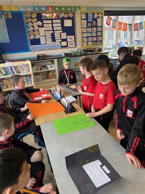 Each boy presented his project to the class, confidently explaining what he had discovered. This helped to build presentation skills, confidence, and a deeper understanding of their chosen topic. We were delighted to welcome Ms Curran’s First Class to visit the classroom and view the projects. The boys did a fantastic job sharing their learning with the younger class, answering questions and explaining their work with enthusiasm.