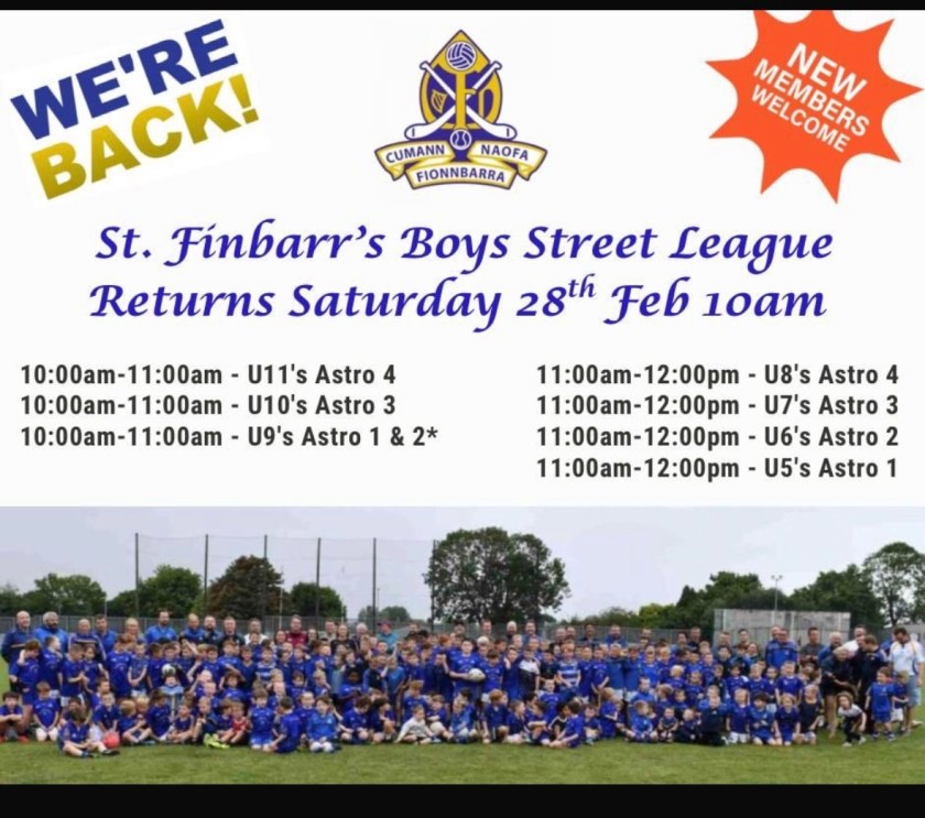 Our local GAA club St Finbarrs are returning for the 2026 season this weekend. Training is beginning on Saturday the 28th of February and details for each age group can be seen below!