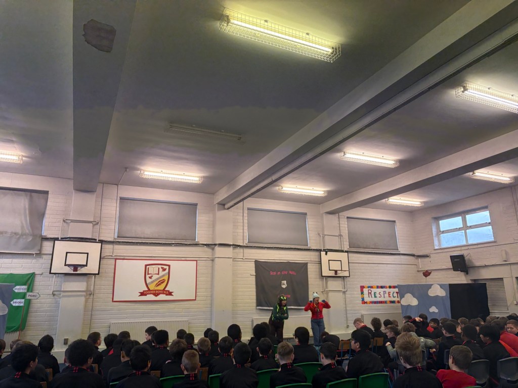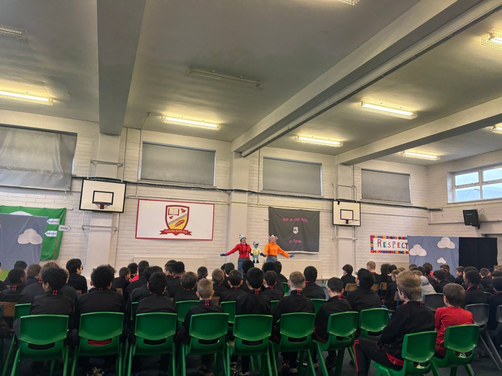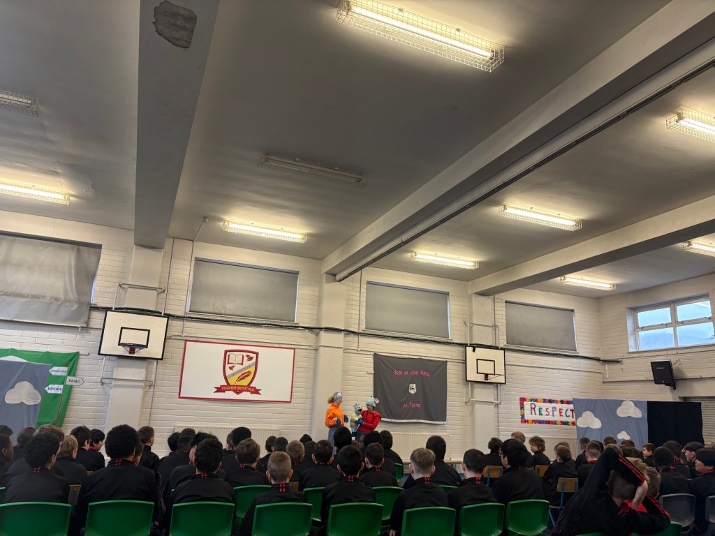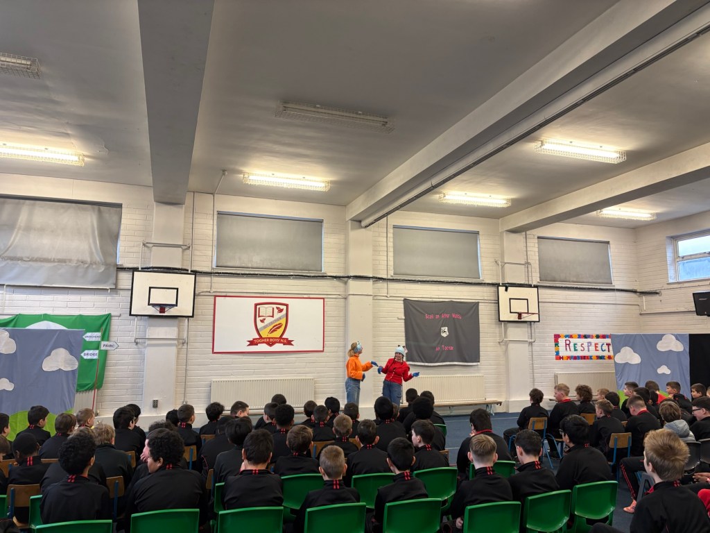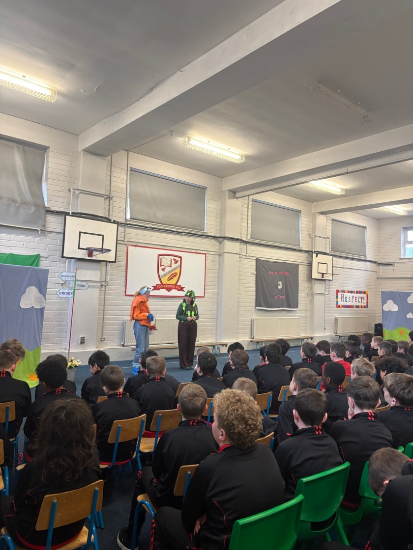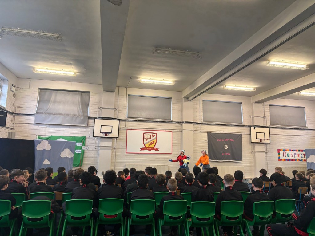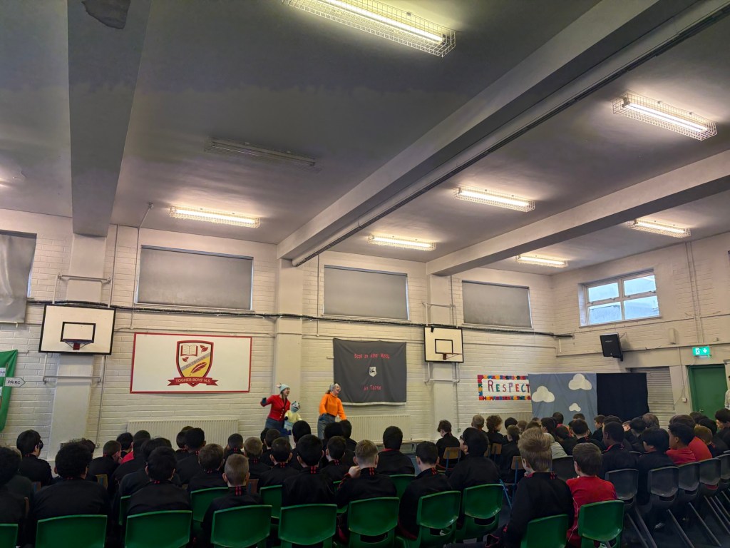 Bhí lá den scoth againn ar an Deardaoin nuair a tháinig aisteoirí ó Cois Laoi Productions chughainn anseo i dTóchar do Seachtain na Gaeilge. Chur siad an drama Na Trí Ghabhairín Cliste ar siúl dúinn. Bhain gach dalta ó Naíonán go Rang a Sé sult as an dtaispéantas iontach agus chaitheamar an lá ag canadh agus ag damhsa i halla na scoile!
