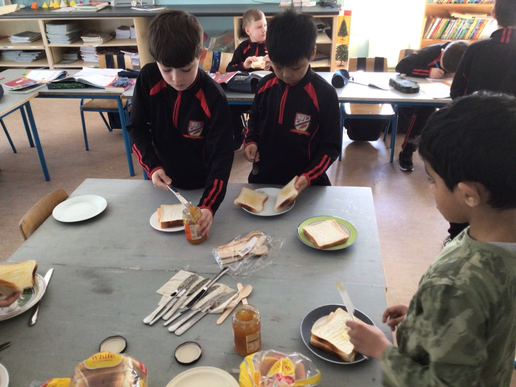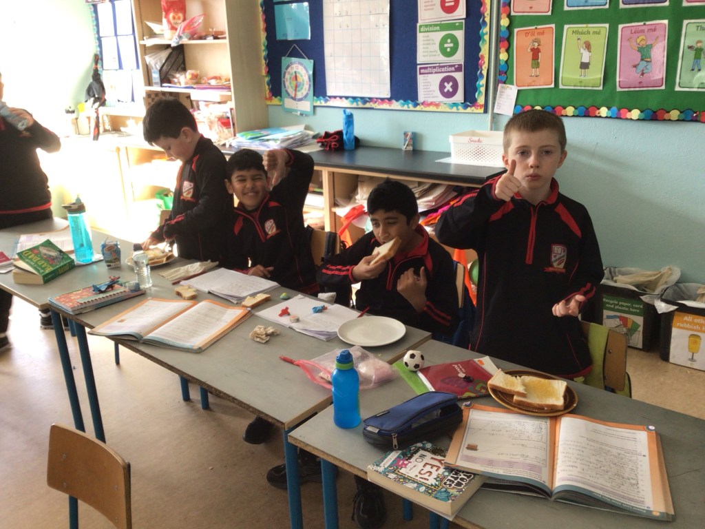 Ms Walsh’s third class were reading all about Paddington Bear this week. We were learning all about his love for marmalade. We looked at how it was made. We wrote a recipe about how to make a marmalade sandwich. We were not sure whether or not we liked marmalade so we had a taste test. To finish off our week we made marmalade sandwiches ourselves. Some people really enjoyed them but some didn’t like them at all. But we had great fun!