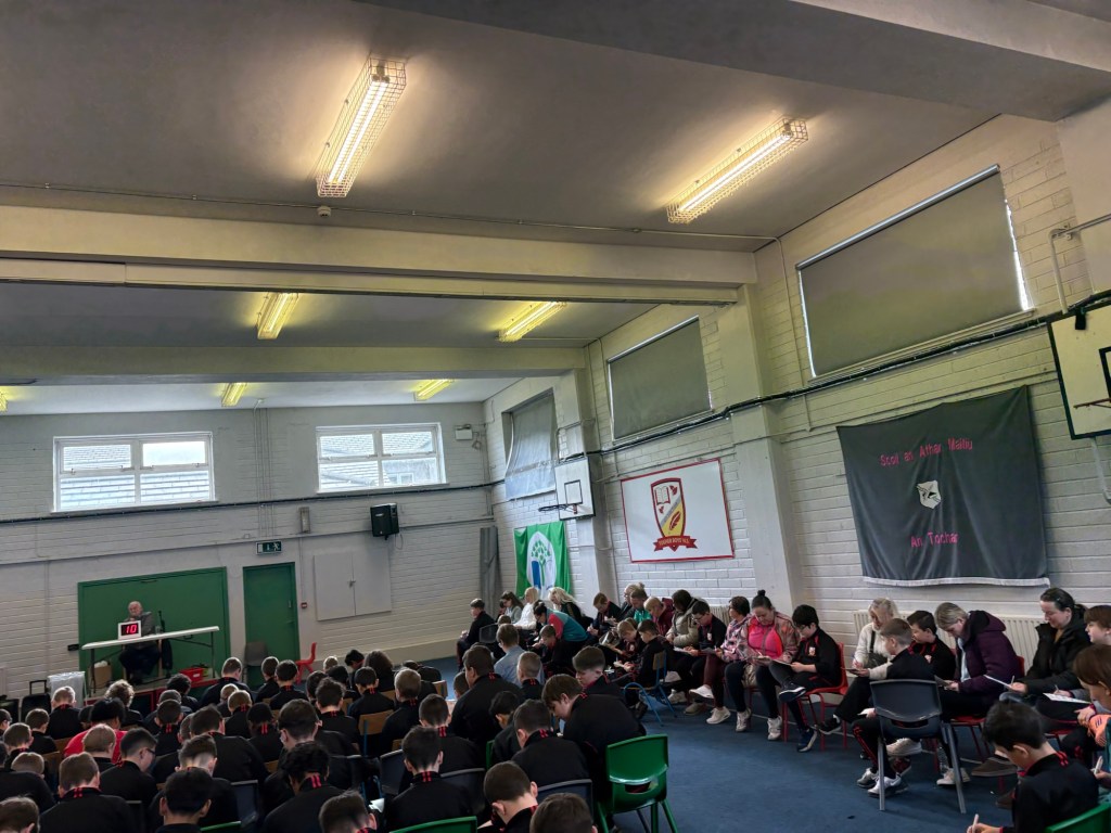 Bhí lá le dealramh againn ar scoil inniu nuair a bhí biongó as Gaeilge againn san halla ag céiliúradh Seachtain na Gaeilge.