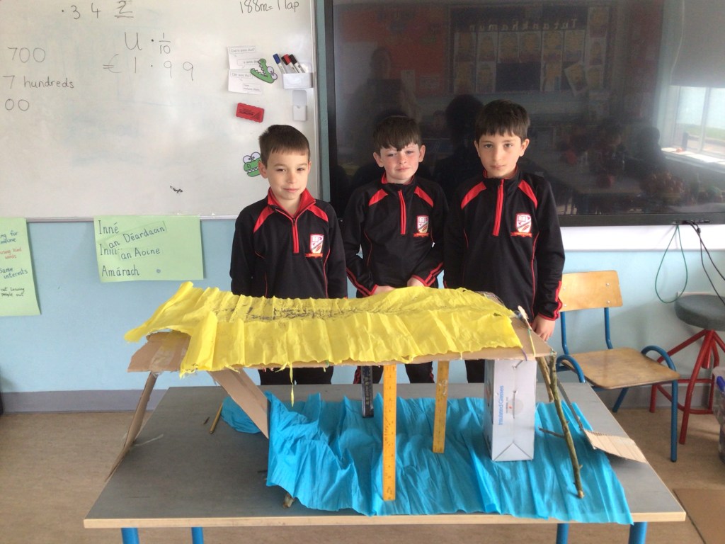 Ms Walsh’s third class were learning all about bridges. We watched some videos about the different types of structures of some famous bridges from around the world. We also went to look at the bridge in Togher near our school to see what kind of materials were used in making it. We decided to make our own bridges in the classroom using matrials that we had at home and in school. We designed the bridge before we built them. We had so much fun constructing our bridges. It was a great experience for us and it has sparked some interest for future careers in engineering.