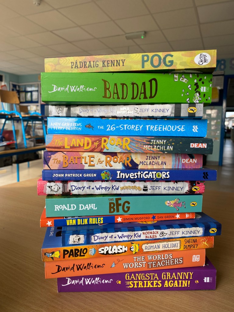3rd Class we’re also delighted to receive their final book from the school this year. They are all eager readers and look forward to their turn reading in our reading corner every day. Check out some of the great titles the boys chose!
