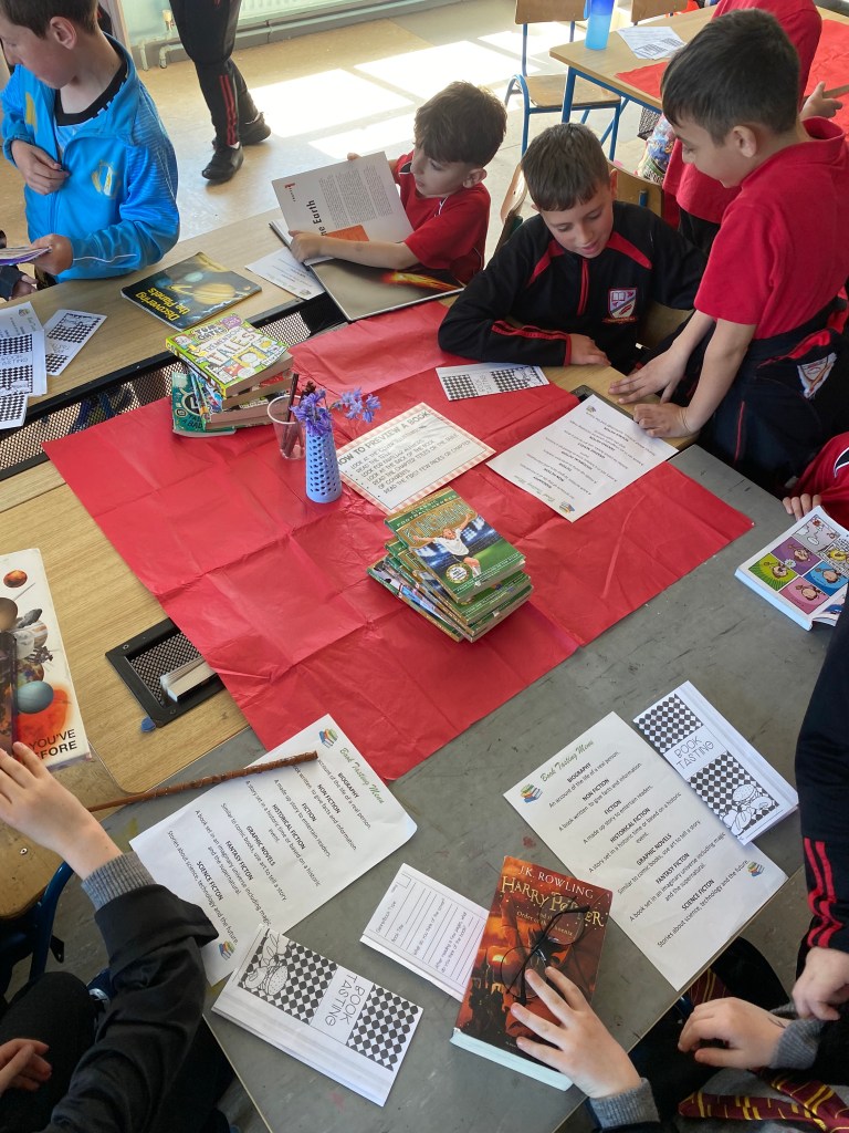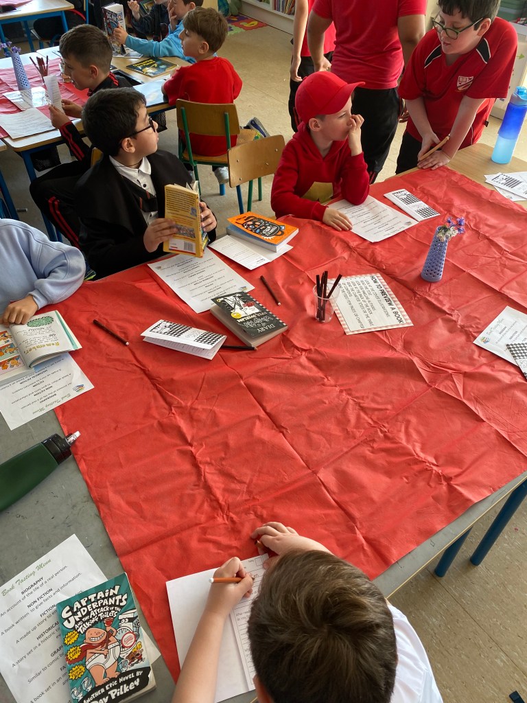 The boys in Ms. McGloin’s 3rd Class celebrated World Book Day by hosting a book tasting in our classroom. This year, we were delighted to invite Ms. Curran’s First Class to join us for the experience.