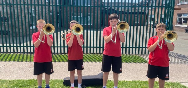 5th Class students Alex, Cory, Ricco, Kelvin and Josh have been studying brass instruments such as the trumpet and the trombone this year under the