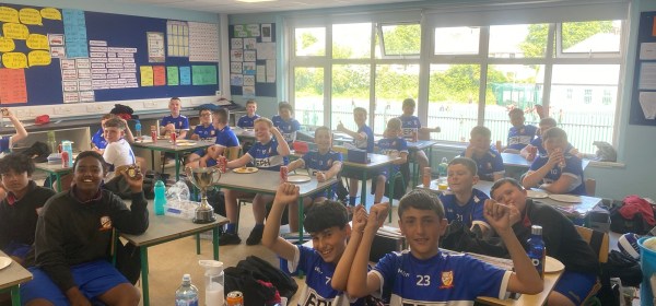 The victorious hurling team visited infants and first class with the trophy after their triumph. The boys are fantastic role models for the younger classes